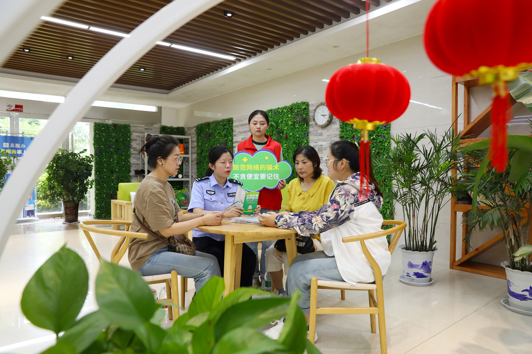 9月14日,江蘇省寶應縣公安局沿河派出所民警在蓮花社區(qū)便民服務站給群眾講解網(wǎng)絡安全知識和防范電信網(wǎng)絡詐騙知識。