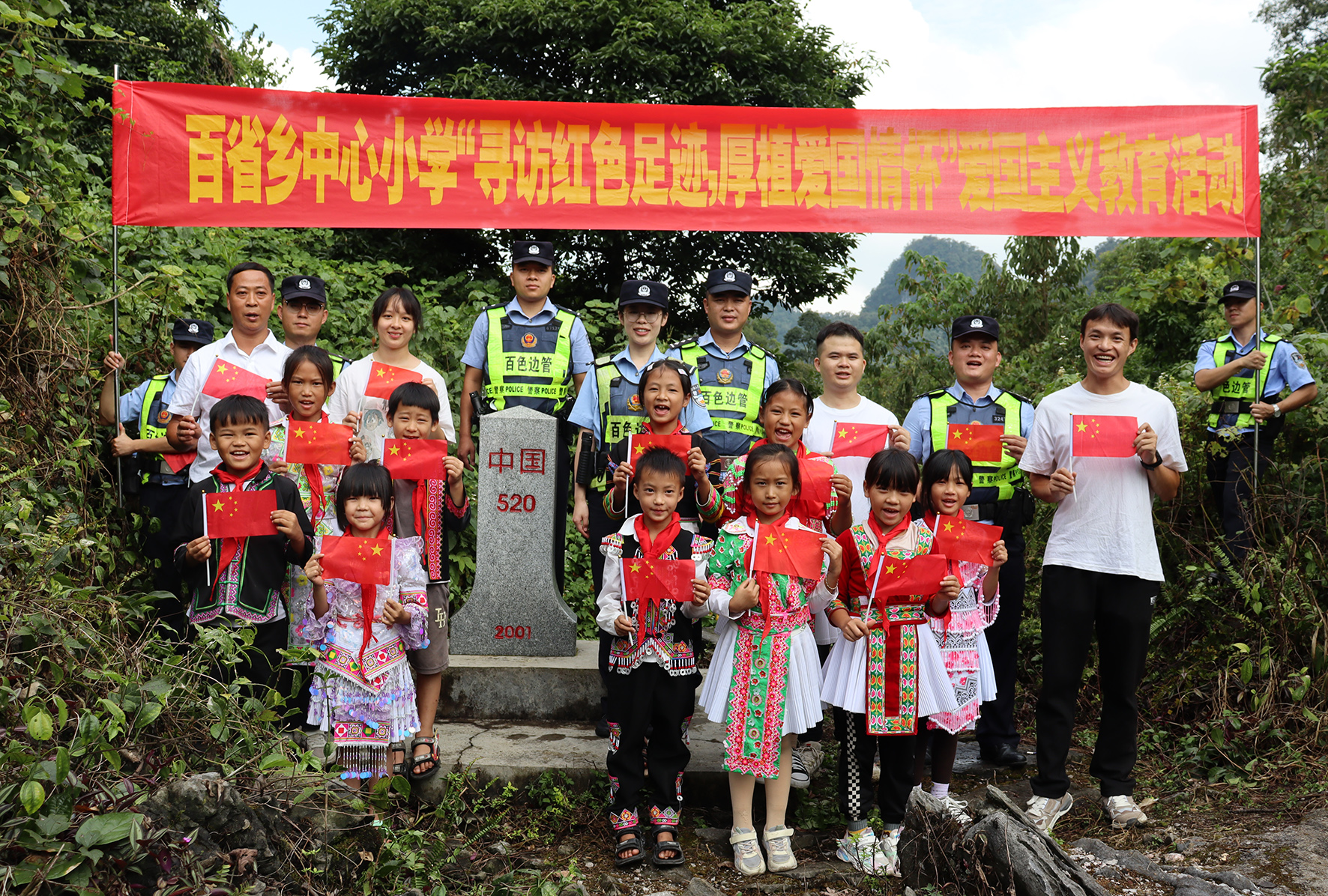 9月28日,廣西百色邊境管理支隊(duì)百省邊境派出所移民管理警察和百省鄉(xiāng)中心小學(xué)少數(shù)民族師生代表前往邊境開(kāi)展“追尋紅色足跡 厚植愛(ài)國(guó)情懷”愛(ài)國(guó)主義教育活動(dòng)。