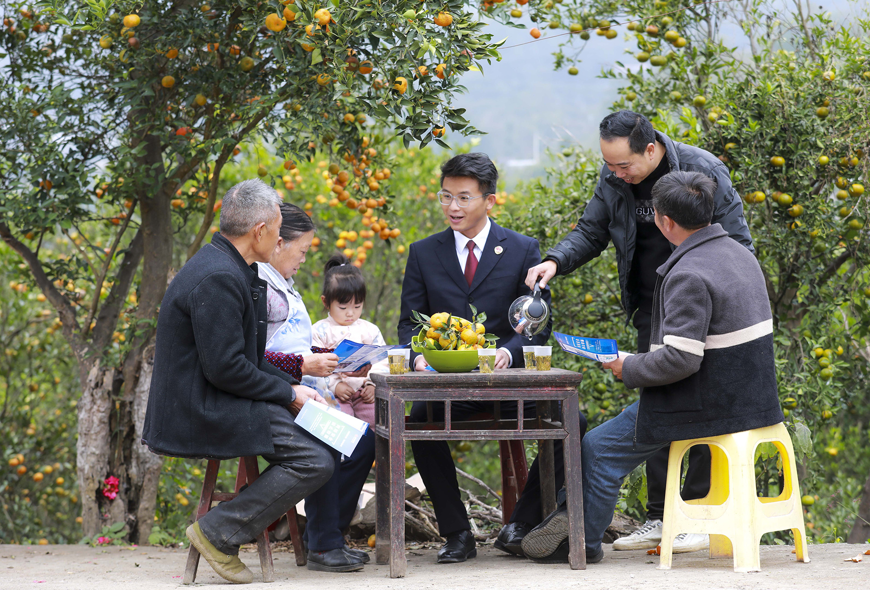 圖為檢察干警在素樸鎮(zhèn)索風(fēng)村農(nóng)家院子給農(nóng)戶講解防范電信網(wǎng)絡(luò)詐騙知識(shí)。