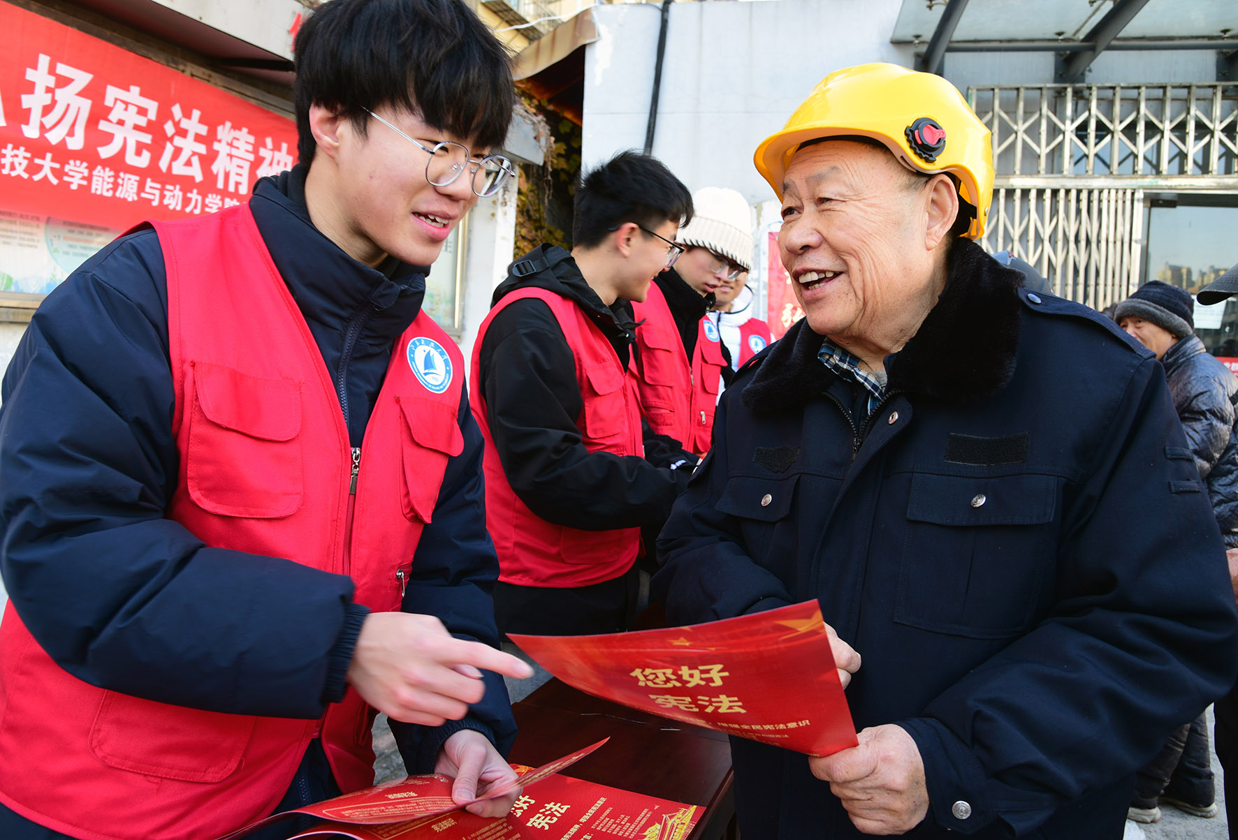 12月1日,在江蘇省鎮(zhèn)江市北府路社區(qū),江蘇科技大學(xué)志愿者向居民宣講憲法及相關(guān)的法律知識。