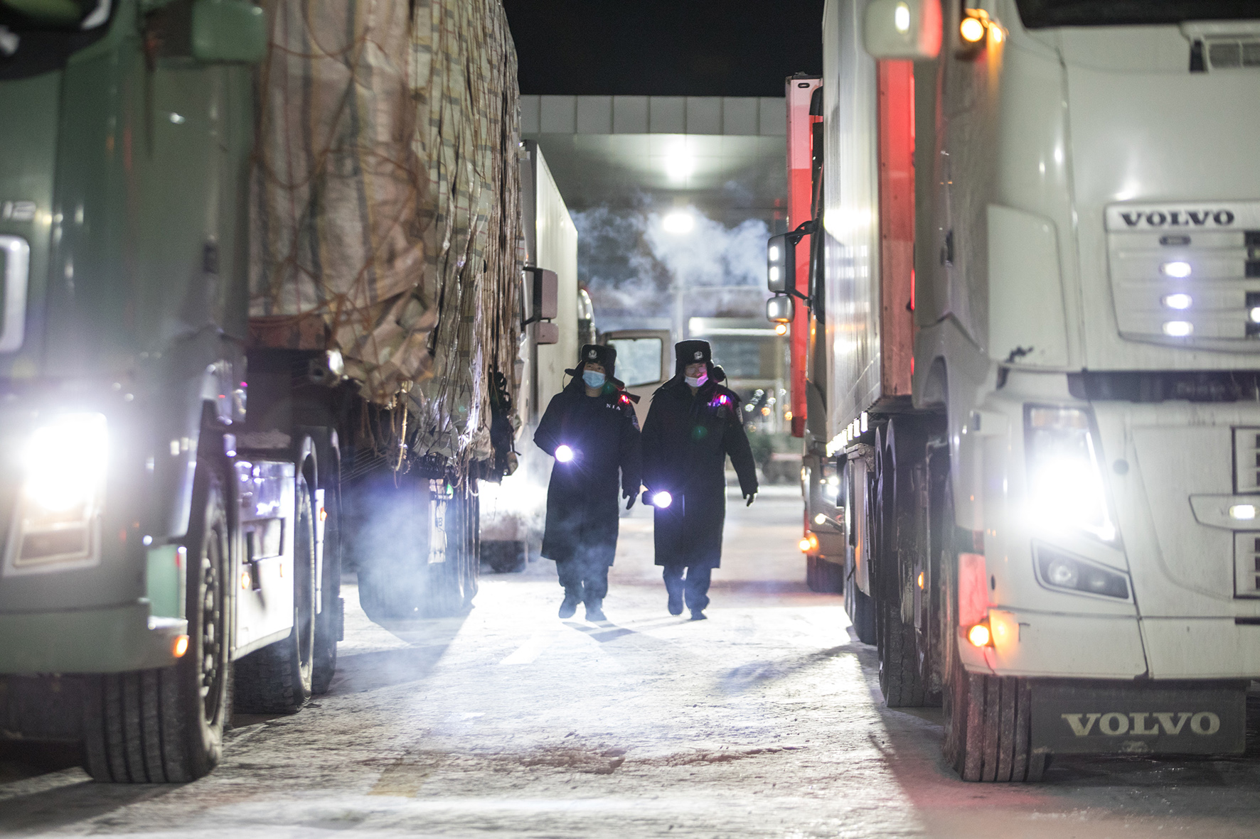 12月16日,內(nèi)蒙古二連浩特公路口岸試行24小時(shí)貨運(yùn)通關(guān)。內(nèi)蒙古出入境邊防檢查總站二連出入境邊防檢查站執(zhí)勤民警,頂著零下31℃的極寒天氣,全力做好車體檢查驗(yàn)放工作,確保車輛通關(guān)高效順暢。