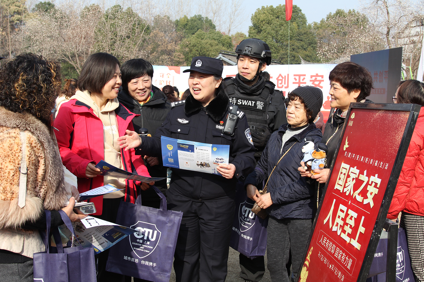 圖為12月27日,民警會同政府反恐工作人員在真新街道柵橋公園向群眾講解國家反恐安全知識。