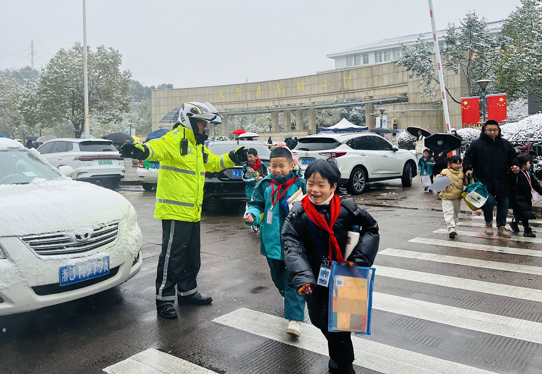 1月22日,浙江省臺(tái)州市天臺(tái)縣城區(qū)迎來入冬后首場(chǎng)降雪。天臺(tái)縣公安局交通警察大隊(duì)迅速開啟“護(hù)學(xué)模式”,增派護(hù)學(xué)崗警力,全力疏通上學(xué)高峰期交通秩序,保障師生出行安全。