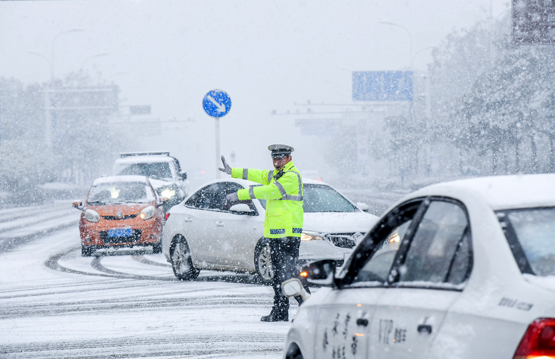 1月22日,安徽省涇縣境內(nèi)突降大雪。涇縣公安局交通管理大隊(duì)以“雪”為令,全警上路,疏堵保暢,確保轄區(qū)道路交通安全暢通。