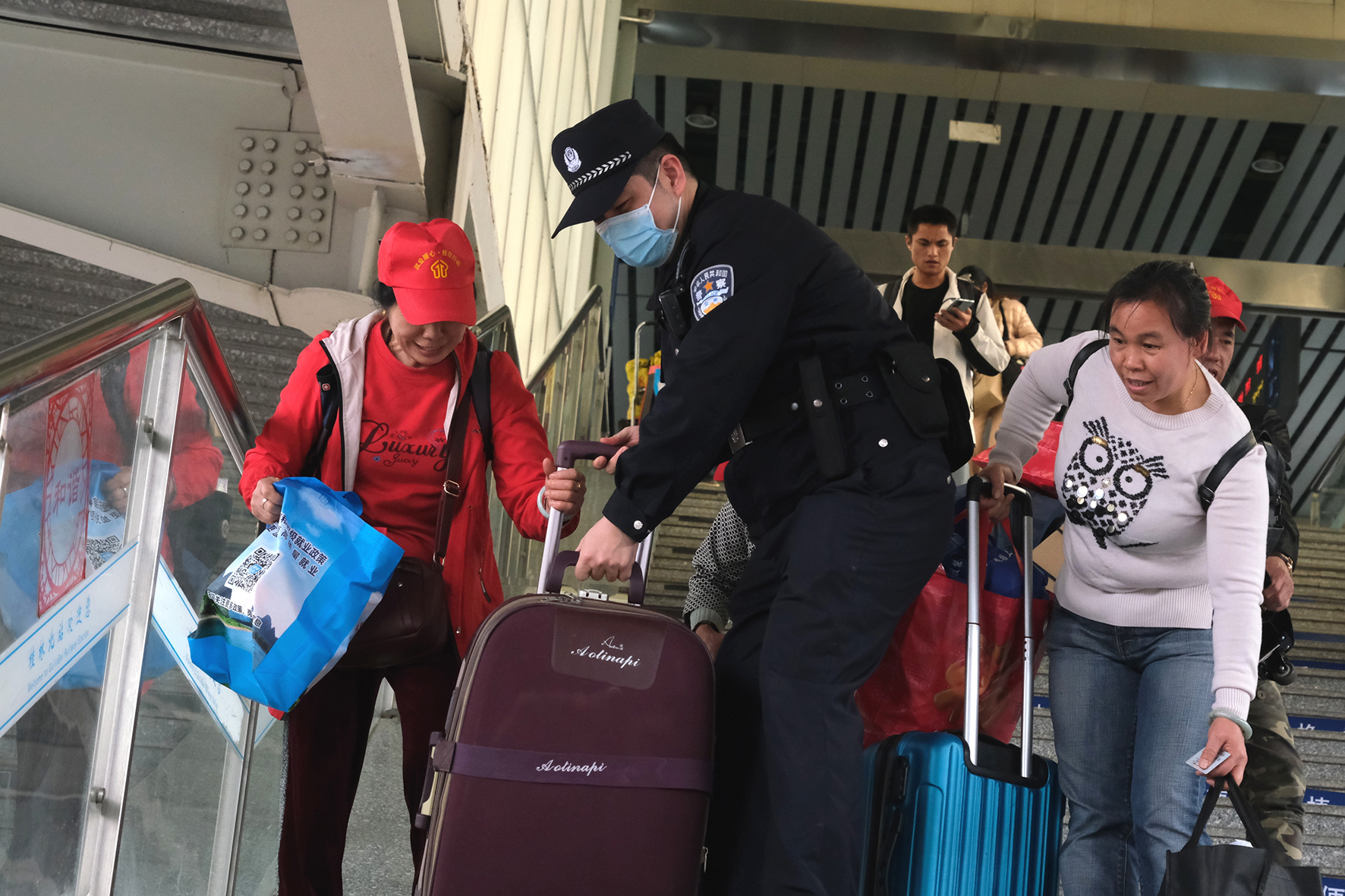 2月20日,由桂林北站始發(fā)的G2961次列車迎來了節(jié)后到深圳務(wù)工的680名農(nóng)民工。柳州鐵路公安處值乘民警加強巡查,維護列車治安秩序,熱情服務(wù)旅客。