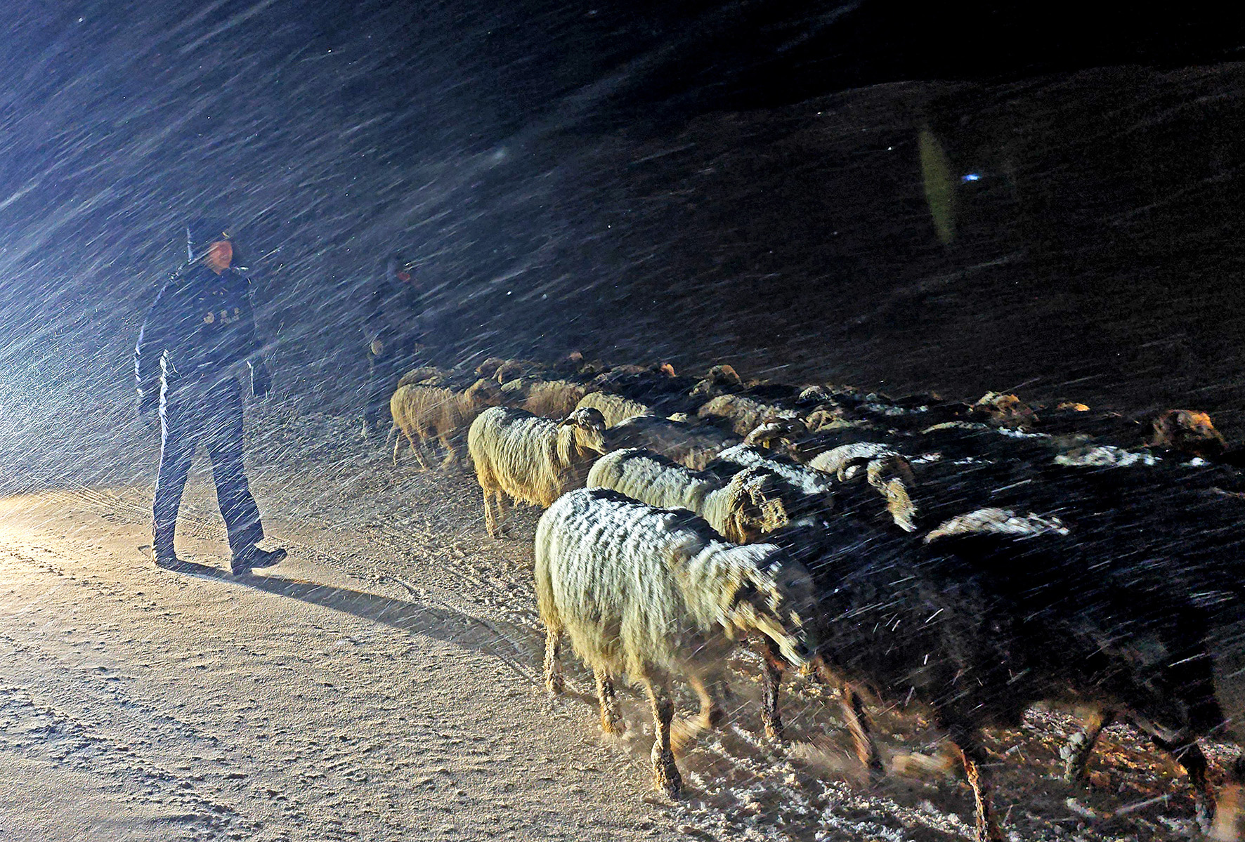 2月16日晚,新疆伊犁夏特邊境派出所接到牧民轉(zhuǎn)場途中遭遇暴風(fēng)雪被困的報警求助,民警們經(jīng)過三個小時的長途跋涉,成功將牧民和1000余只牲畜平安護(hù)送至定居點。