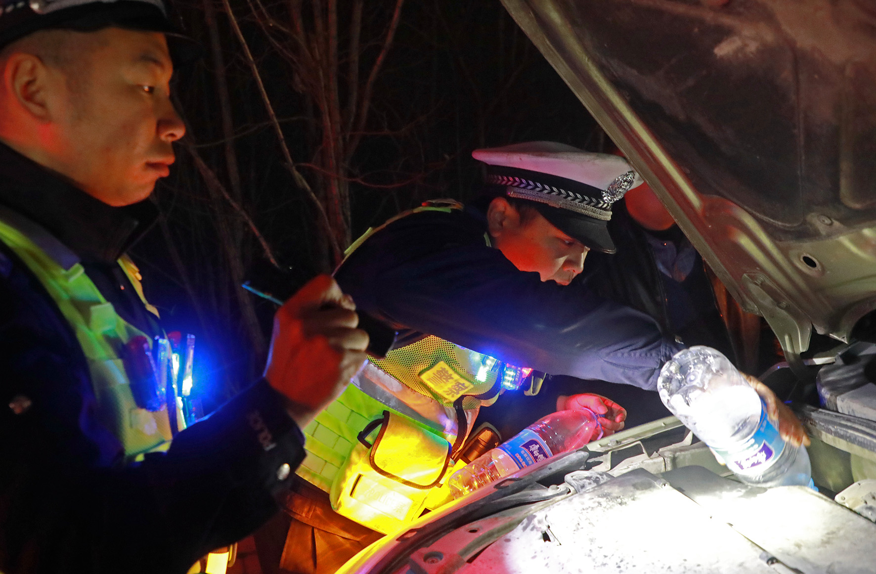 2月16日,江西省公安廳高速公路公安局直屬二分局第五大隊民輔警幫助群眾排除車輛故障。