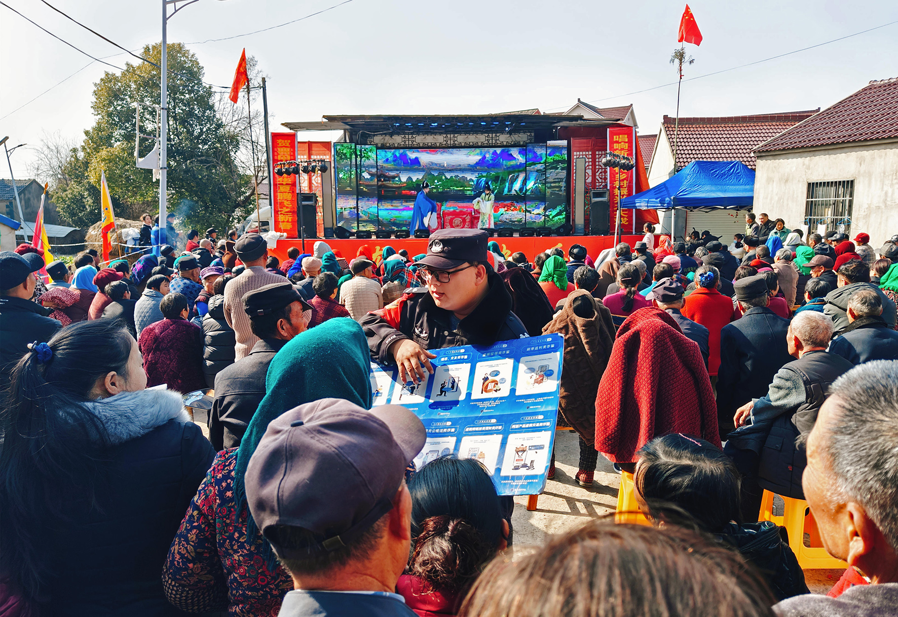 2月11日,安徽省當(dāng)涂縣公安局烏溪派出所依托鄉(xiāng)村大舞臺等文藝活動,深入開展普法宣傳。
