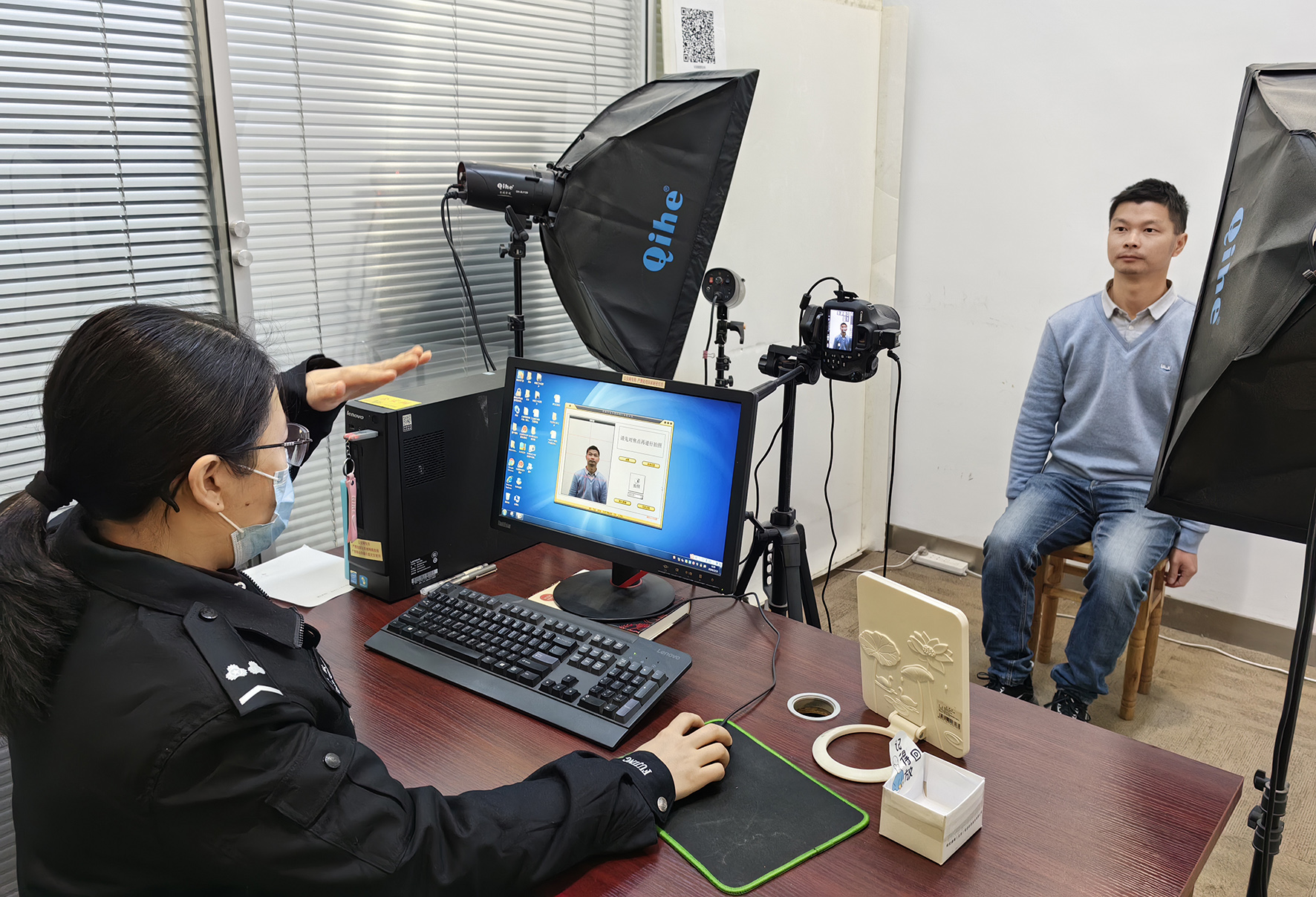 2月13日,安徽省舒城縣公安局杭埠派出所戶籍窗口正在為前來辦事的群眾采集身份證信息。