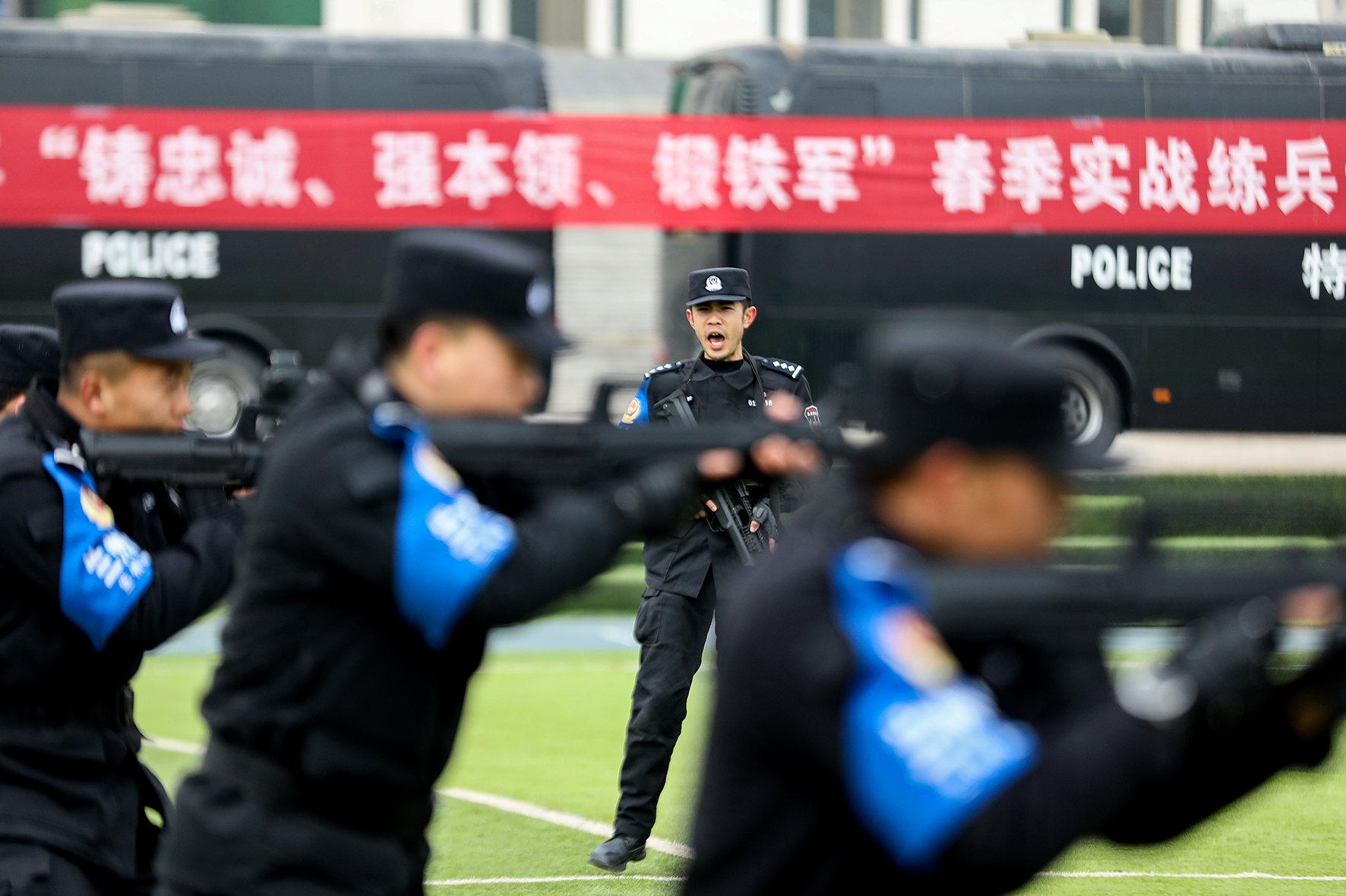 2月27日,甘肅蘭州市公安局特警隊伍開展春季實戰(zhàn)訓(xùn)練,百名特戰(zhàn)隊員在訓(xùn)練場上開展持槍戰(zhàn)術(shù)動作、突擊攻堅戰(zhàn)術(shù)、盾棍叉小組戰(zhàn)術(shù)、無人機操作、體能對抗等多項警事技能訓(xùn)練,拉開2024春季大練兵序幕。