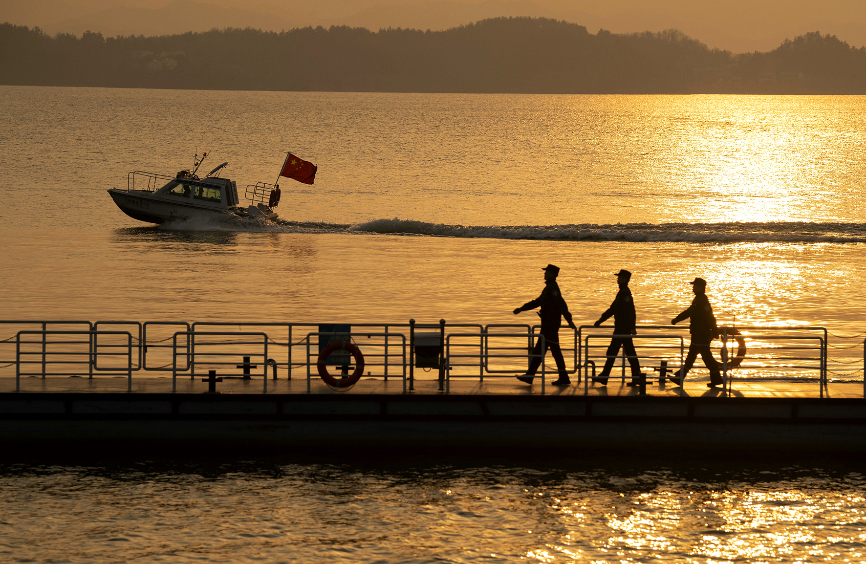 3月12日,夕陽映照著安徽省舒城縣公安局旅游警察大隊(duì)民輔警巡邏的身影。