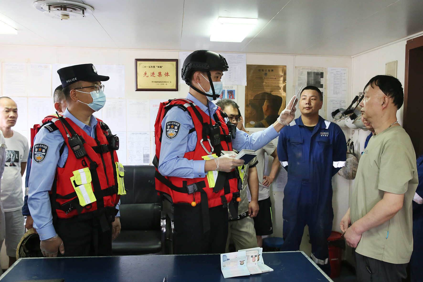 5月1日,珠海邊檢總站開平邊檢站執(zhí)勤移民管理警察,為到港船舶開通“綠色通道”,快速辦理入境手續(xù)。