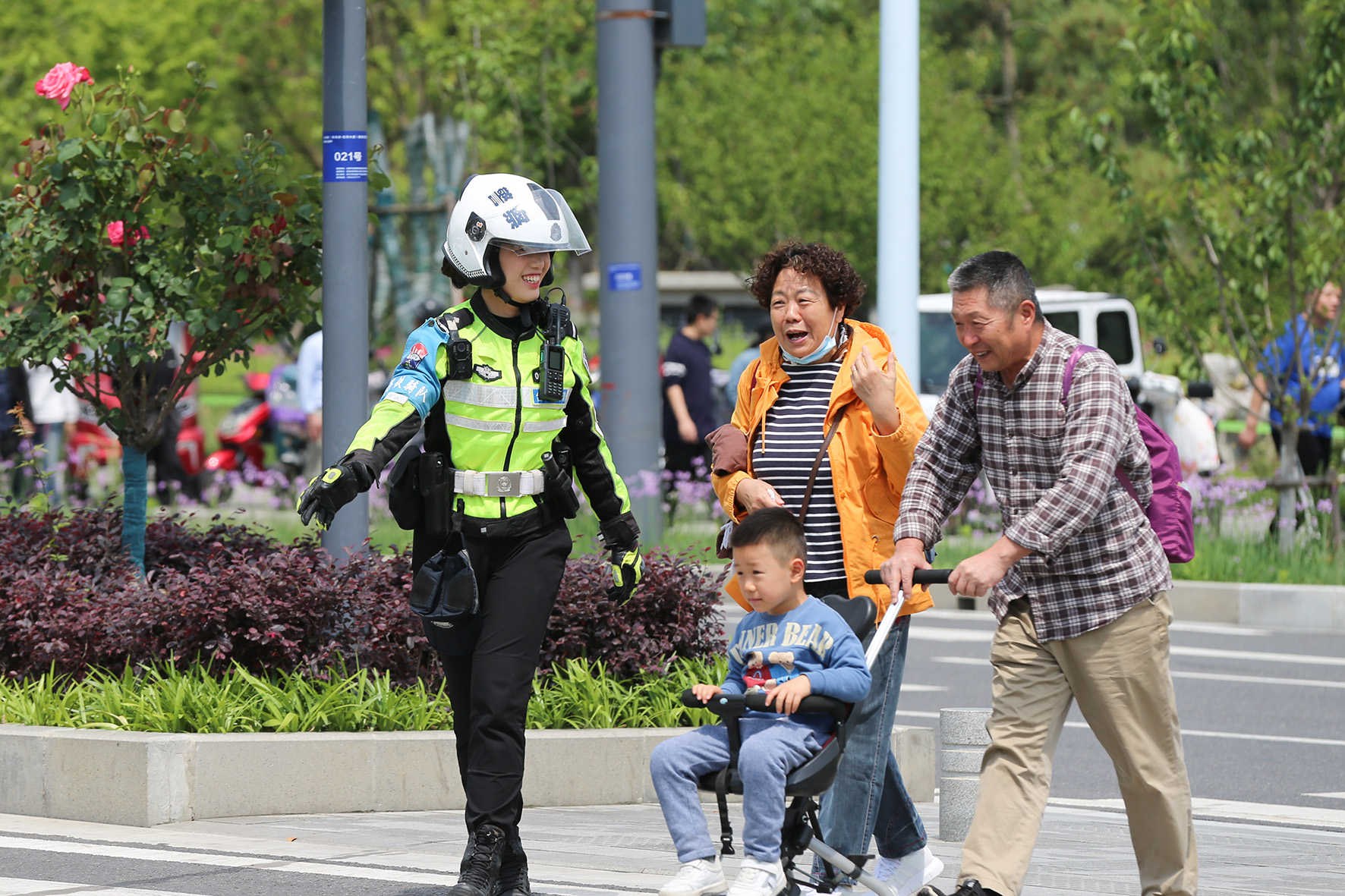 5月2日,安徽省舒城縣公安局旅游警察大隊(duì)民警輔警在游客較為集中的景點(diǎn)巡邏守護(hù)、疏導(dǎo)交通、為游客提供服務(wù)。