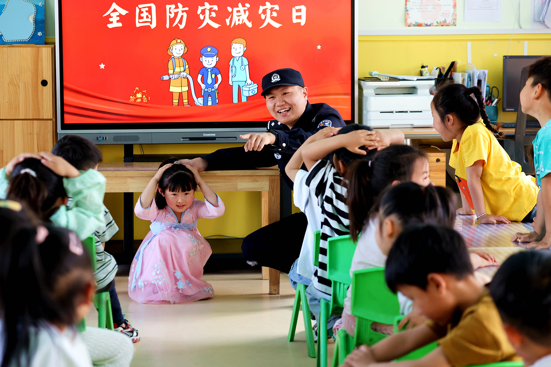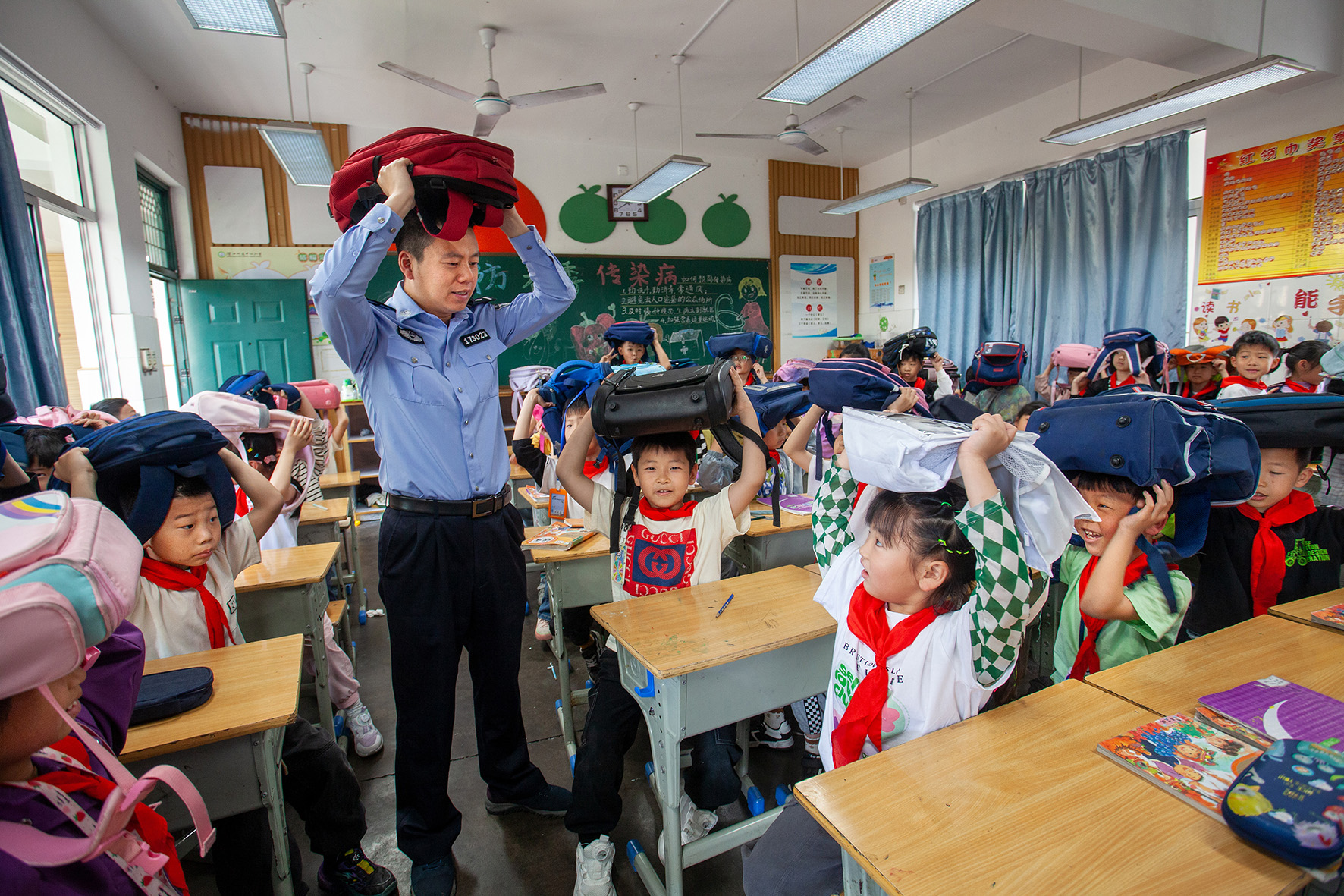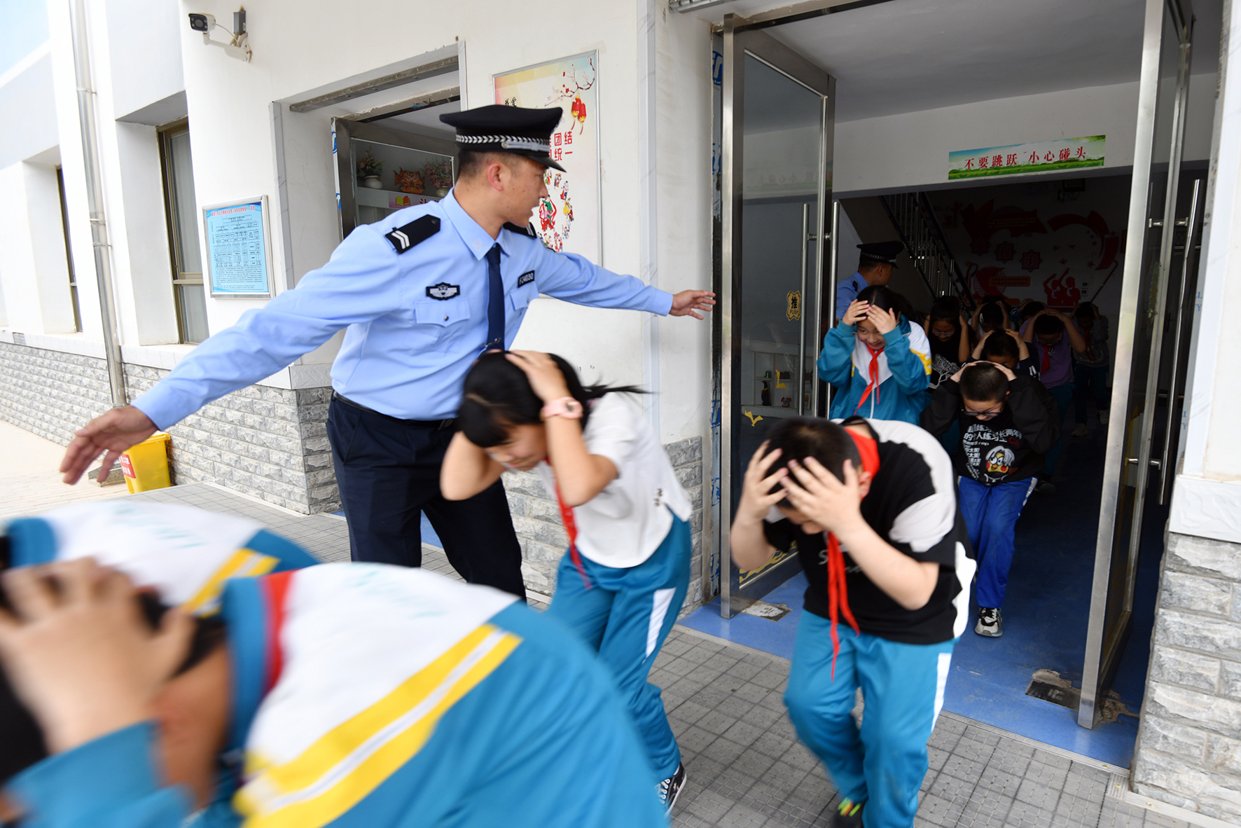 5月9日,安徽省合肥市公安局瑤海分局龍崗派出所民警走進(jìn)轄區(qū)學(xué)校開展防震減災(zāi)應(yīng)急疏散演練活動。