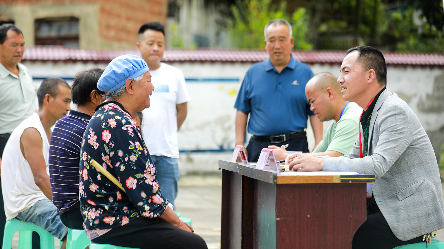 圖為7月1日,雨朵鎮(zhèn)人大代表在登高社區(qū)認(rèn)真聽取群眾的意見和建議。