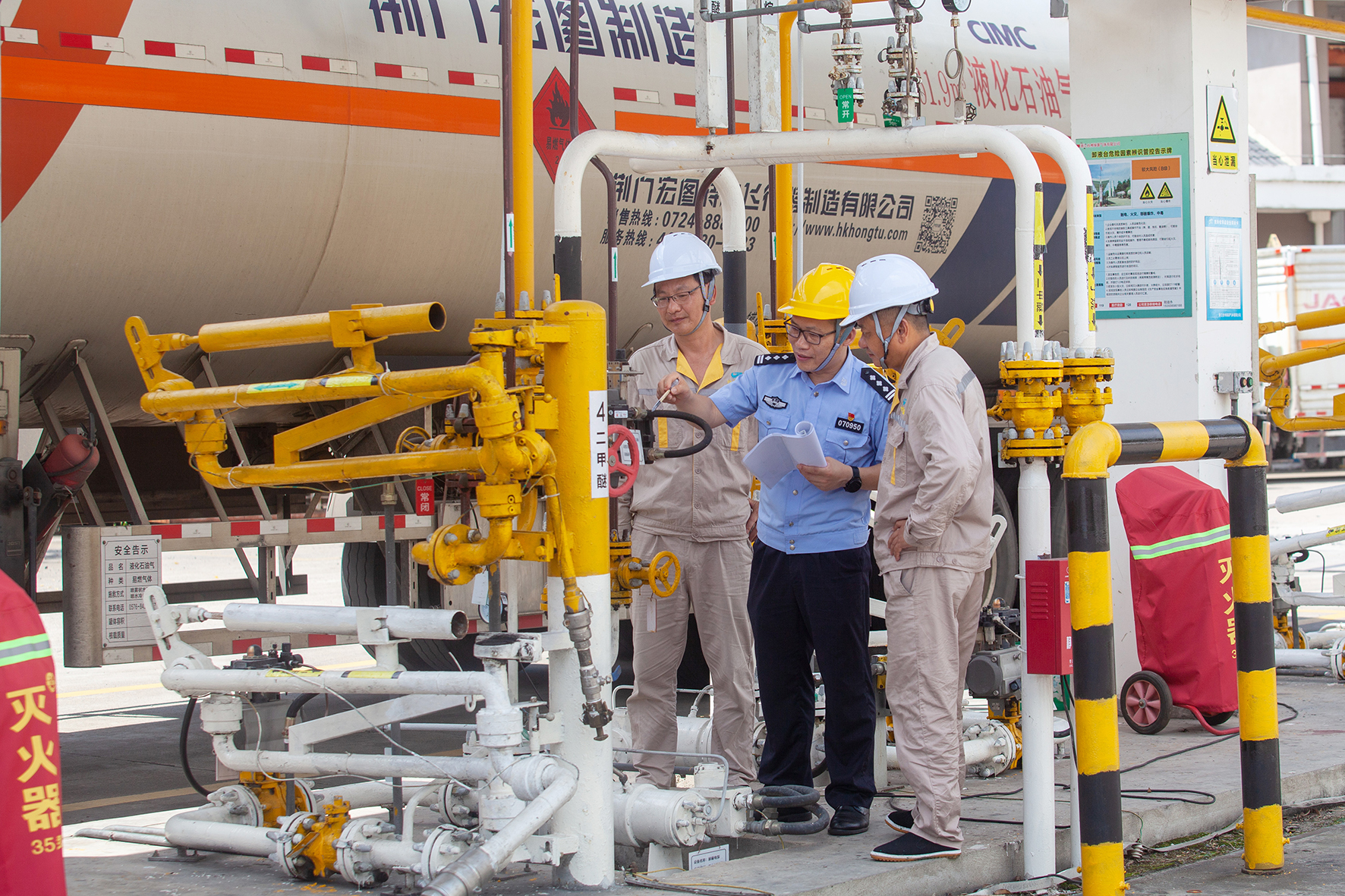 7月1日,浙江省臺州市公安局黃巖分局城南派出所民警來到轄區(qū)內(nèi)的一家氣體存儲灌裝企業(yè)開展安全檢查。眼下正值高溫季節(jié),黃巖警方組織對各類化學(xué)危險品生產(chǎn)存儲企業(yè)開展全面安全大排查,對發(fā)現(xiàn)的各類隱患及時跟進整改,防范遏制各種安全事故發(fā)生。