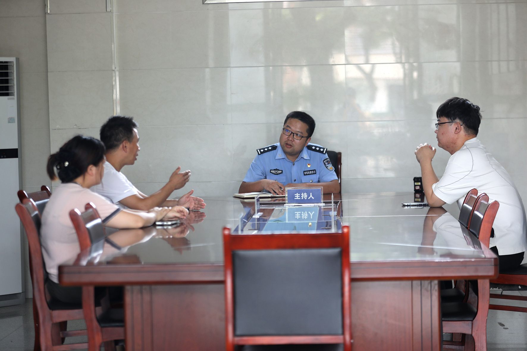 圖二:民警引典據(jù)理與矛盾雙方當(dāng)事人交流。