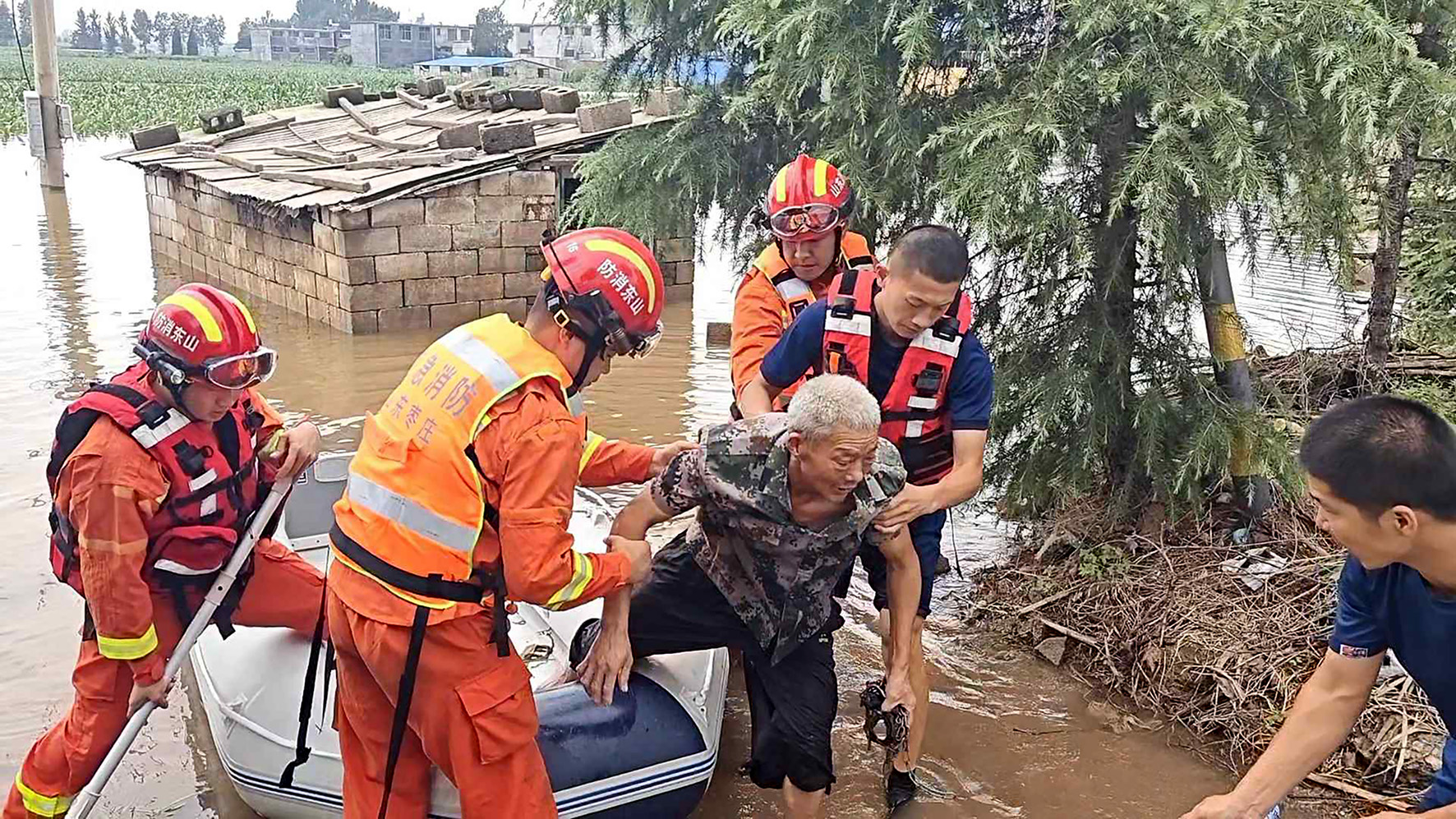 7月9日,受持續(xù)強降雨影響,山東省棗莊市山亭區(qū)桑村鎮(zhèn)西大河村被淹,山亭區(qū)翼云消防救援站救援人員利用橡皮舟轉(zhuǎn)移被困群眾。