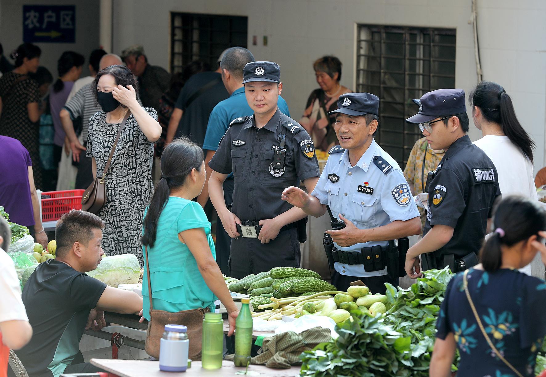 7月26日一大早,湖北省荊門市公安局巡特警支隊(duì)生態(tài)運(yùn)動(dòng)公園警務(wù)站民輔警在惠民市場,向商戶開展反扒防盜、安全防范等法治宣傳。