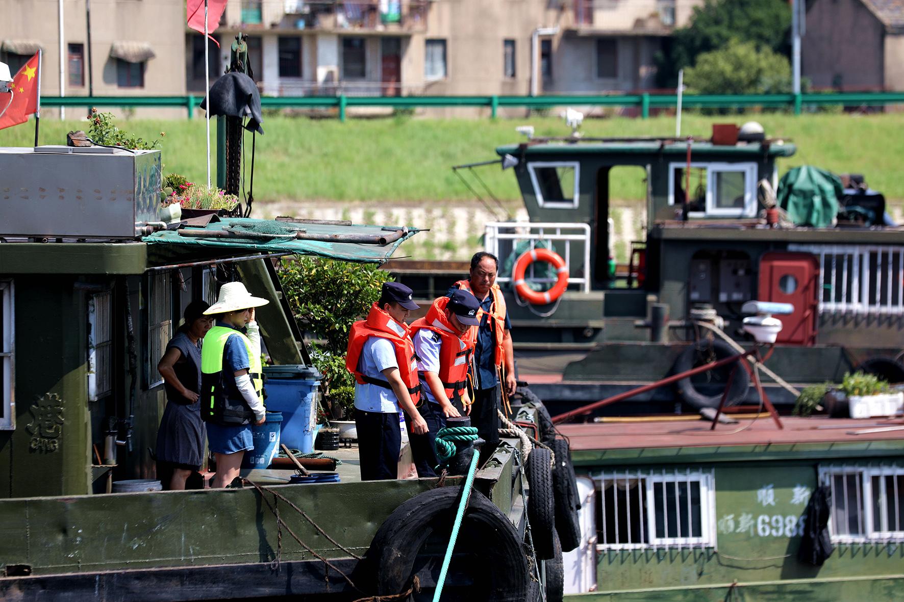 8月3日,安徽省舒城縣公安局杭埠派出所民警輔警在轄區(qū)河南碼頭開展走訪,講解安全注意事項(xiàng),確保轄區(qū)水上交通和船只安全穩(wěn)定。