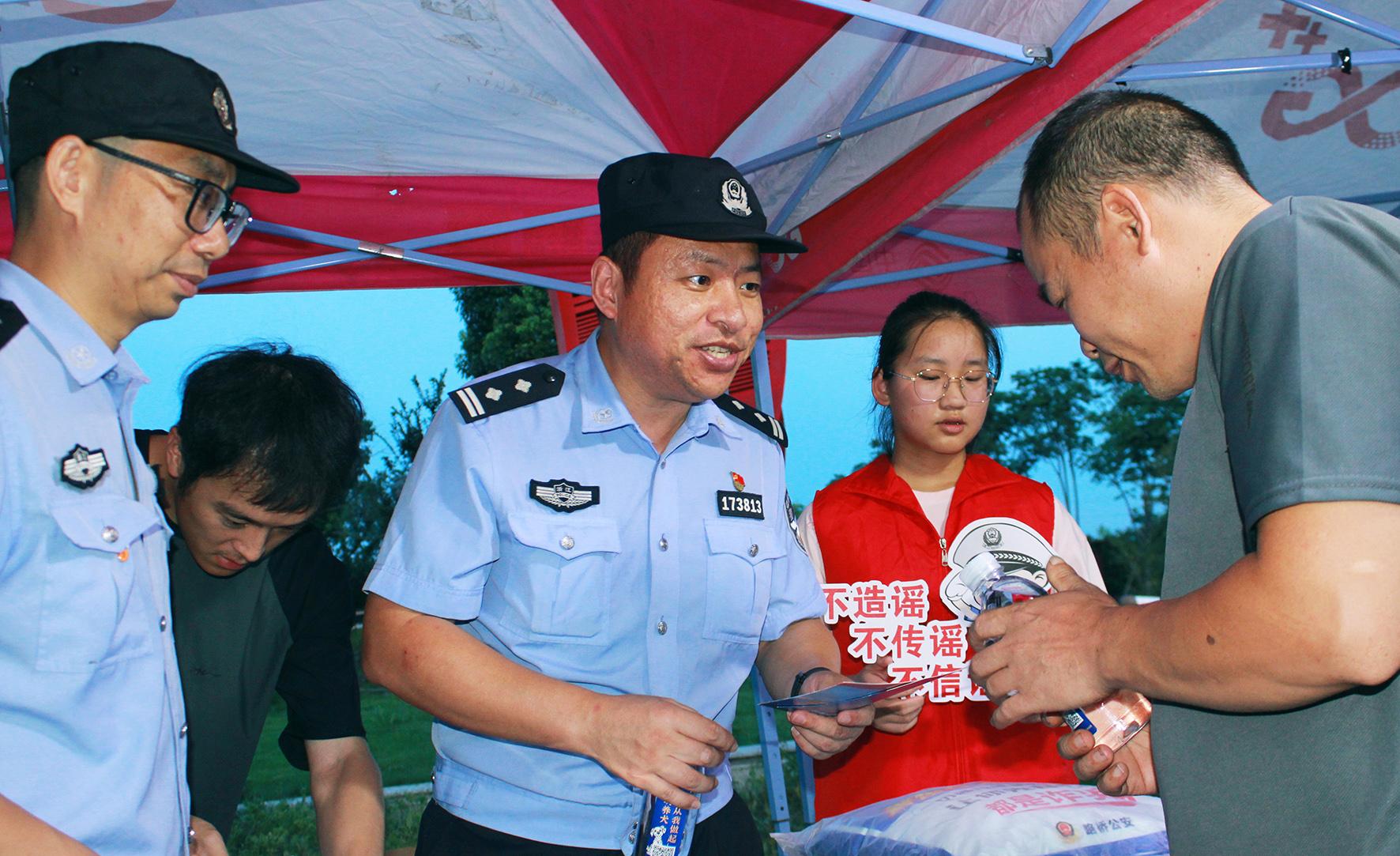 圖為8月6日晚,蓬街派出所民警向群眾宣傳反詐知識(shí)。
