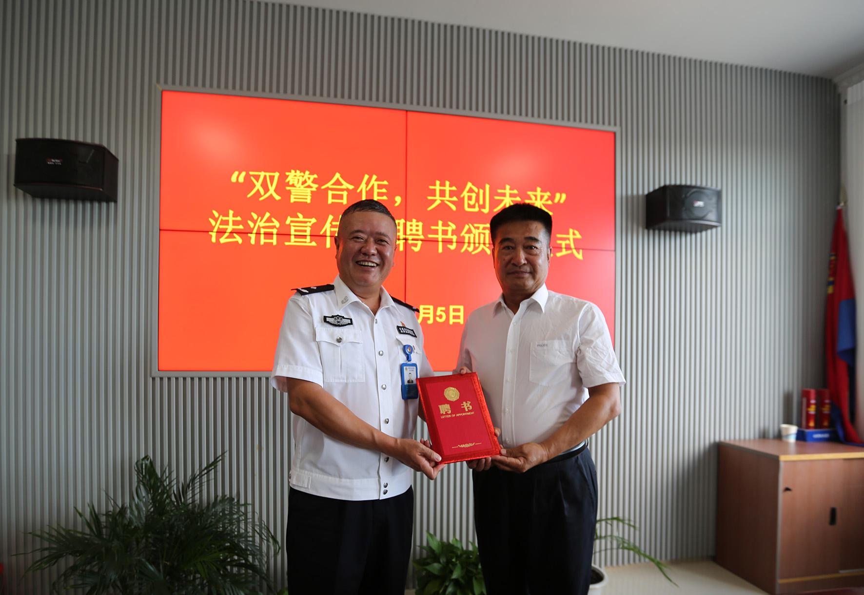 圖為監(jiān)獄負(fù)責(zé)人向法治宣傳員頒發(fā)聘書(shū)。