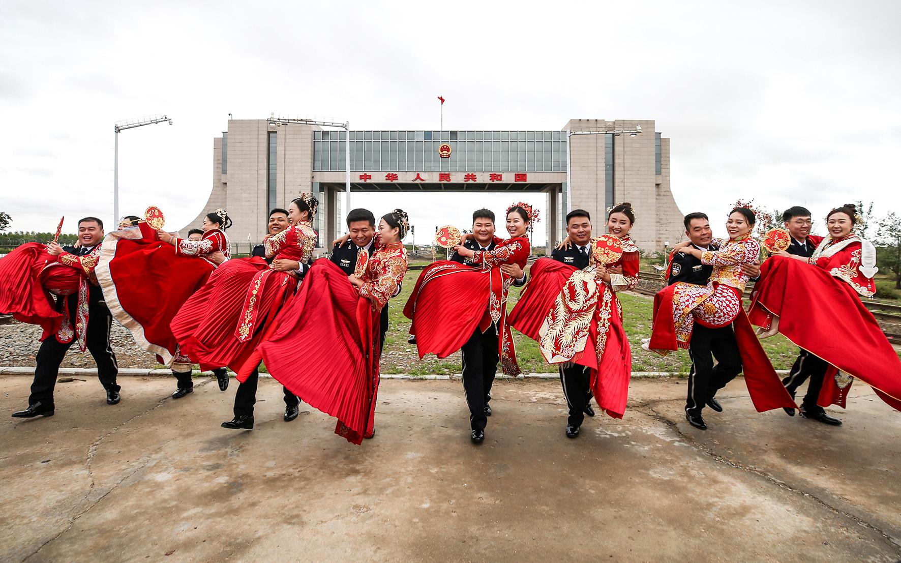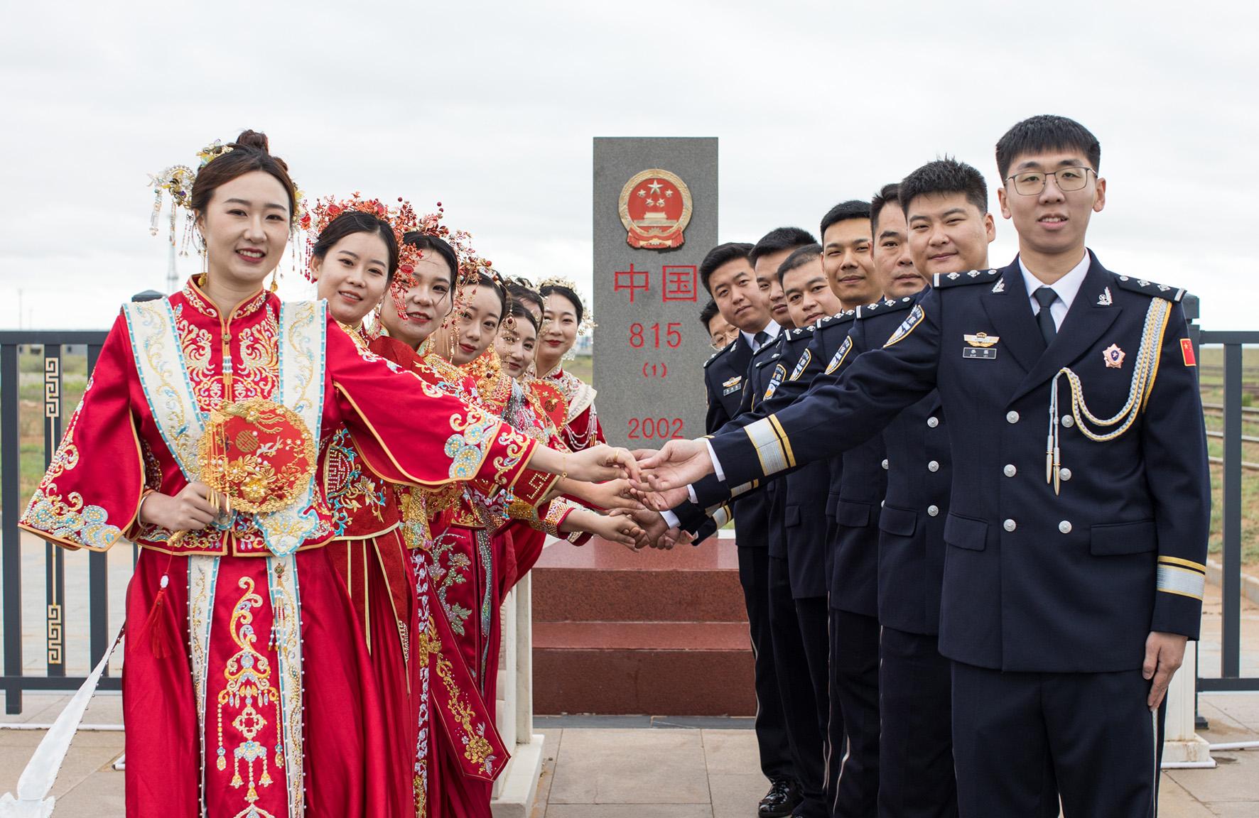 8月11日,駐守在祖國北大門的內(nèi)蒙古出入境邊防檢查總站二連出入境邊防檢查站,在巍峨壯觀的國門下為8對新人舉辦“邊守·邊愛”第五屆“愛在北疆 情定國門”集體婚禮,激發(fā)民警扎根邊疆、奉獻(xiàn)青春、建功立業(yè)的工作熱情。