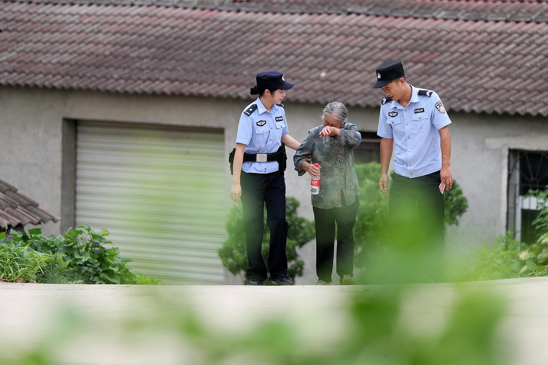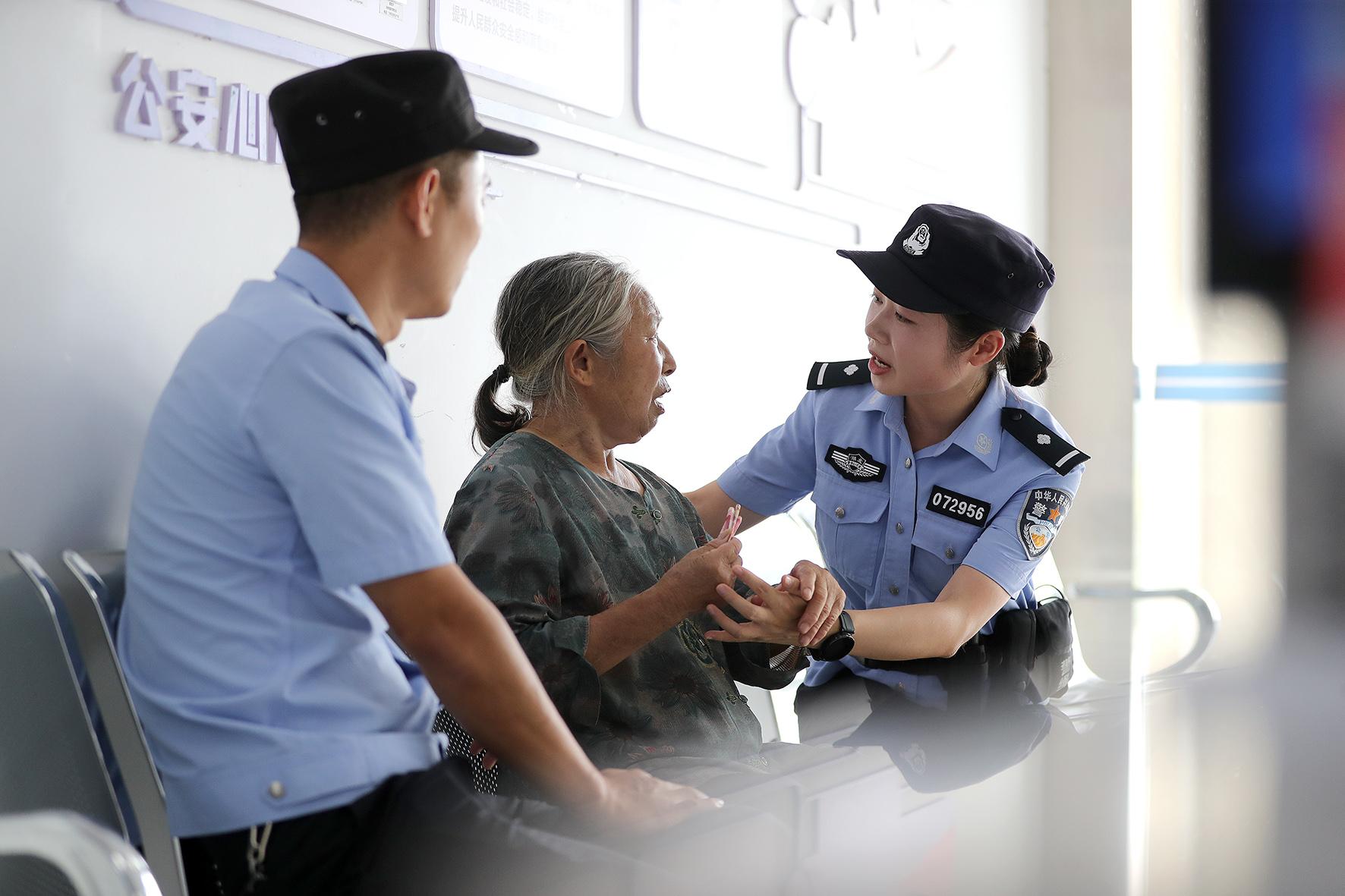 民警將謝婆婆攙扶進派出所,第四次將錢還給老人。