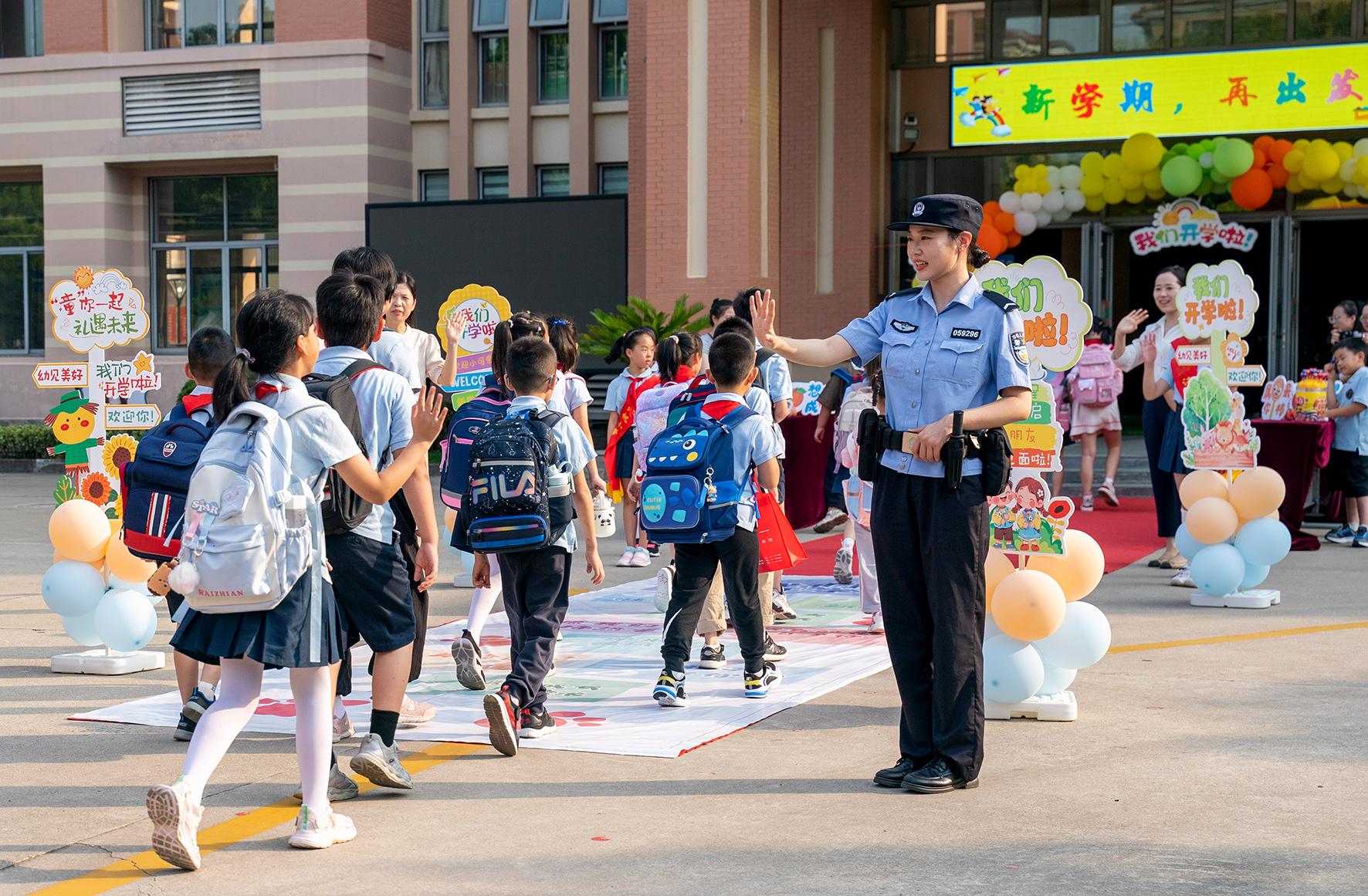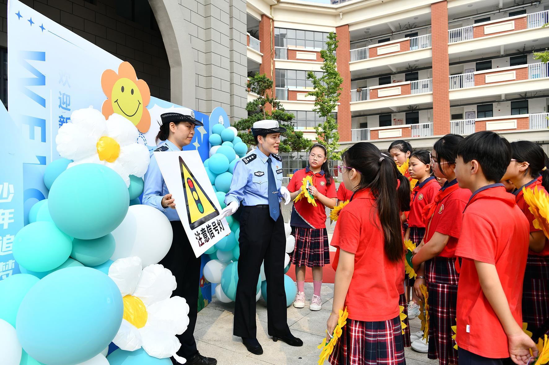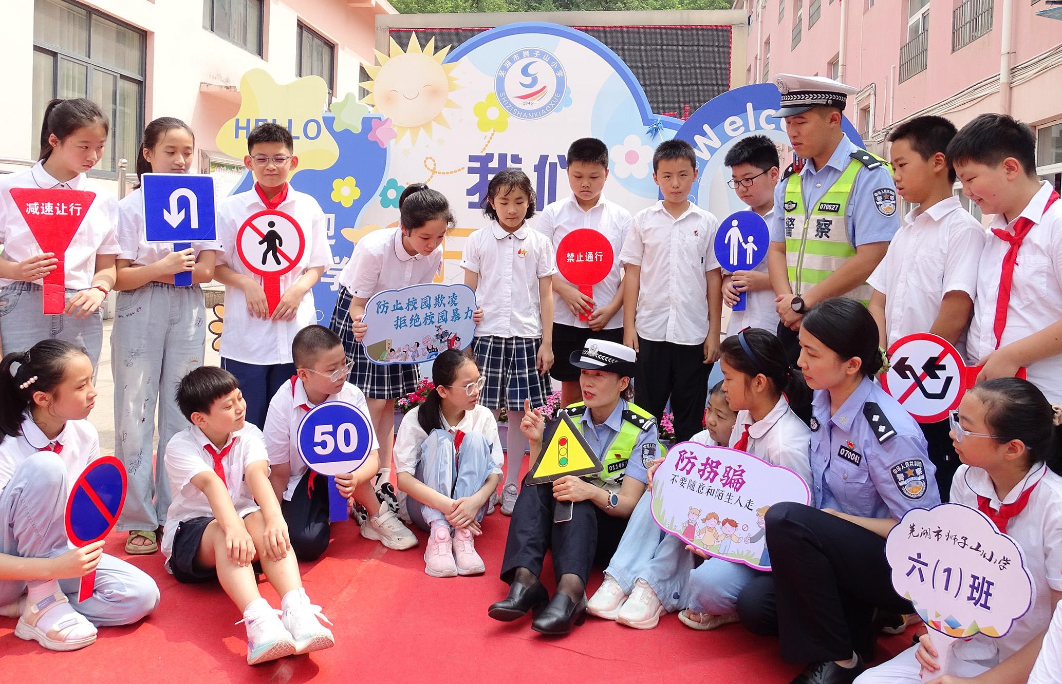 9月2日,安徽省蕪湖市公安局鏡湖分局赭山派出所聯(lián)合鏡湖交警大隊(duì)開(kāi)展“開(kāi)學(xué)第一課 法治伴‘童’行”活動(dòng)。