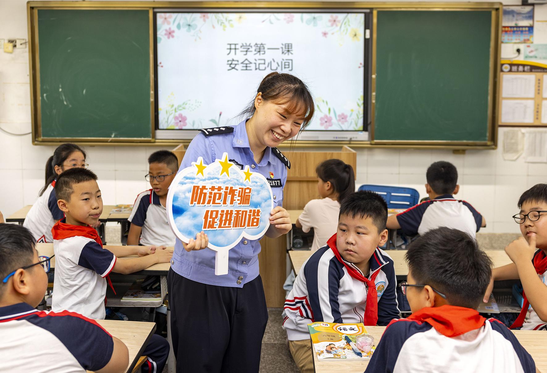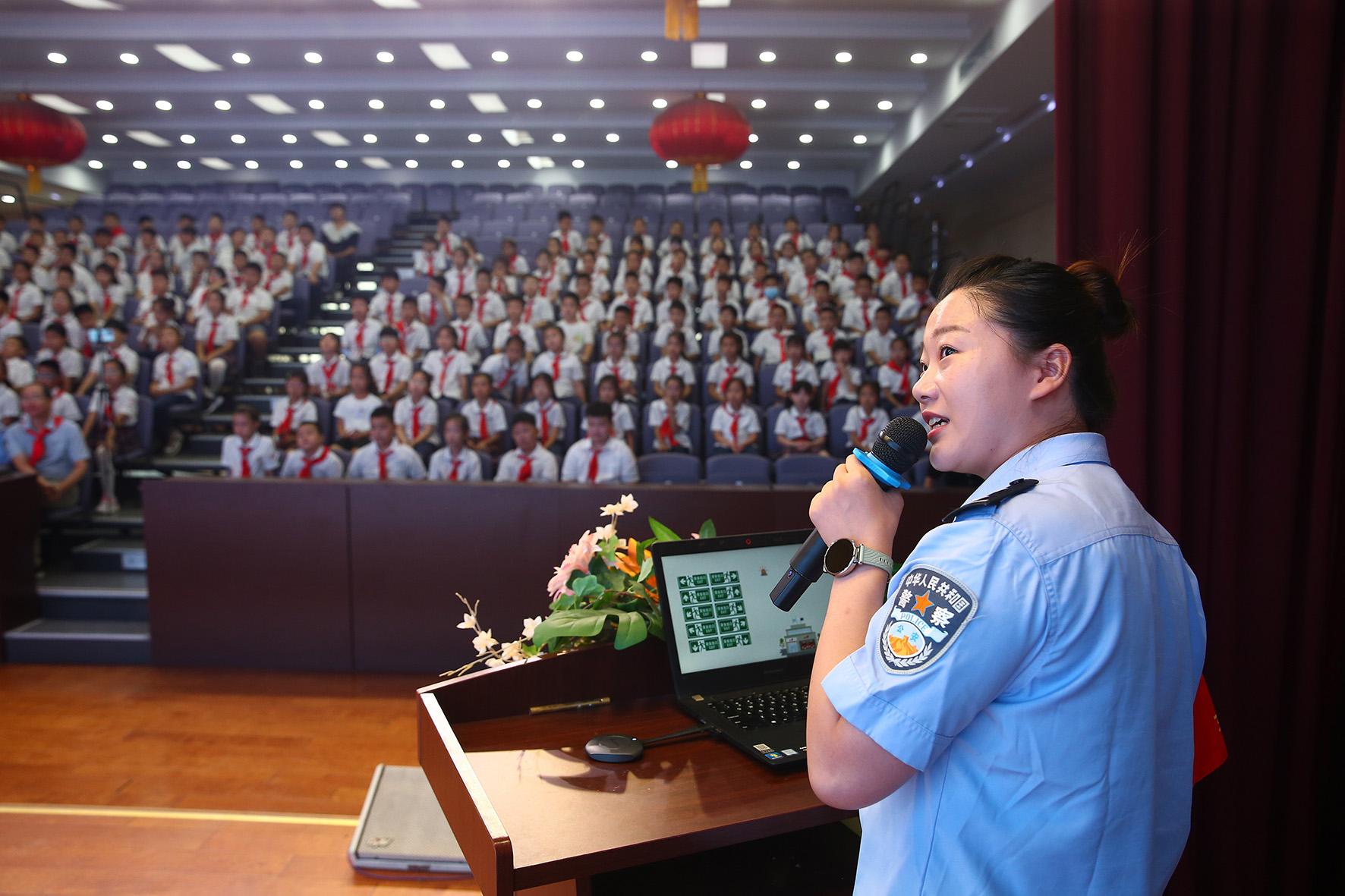 9月2日,山東省濟(jì)南市公安局市中區(qū)分局組織民警走進(jìn)轄區(qū)學(xué)校給學(xué)生普及安全知識(shí),上好開(kāi)學(xué)“第一課”。