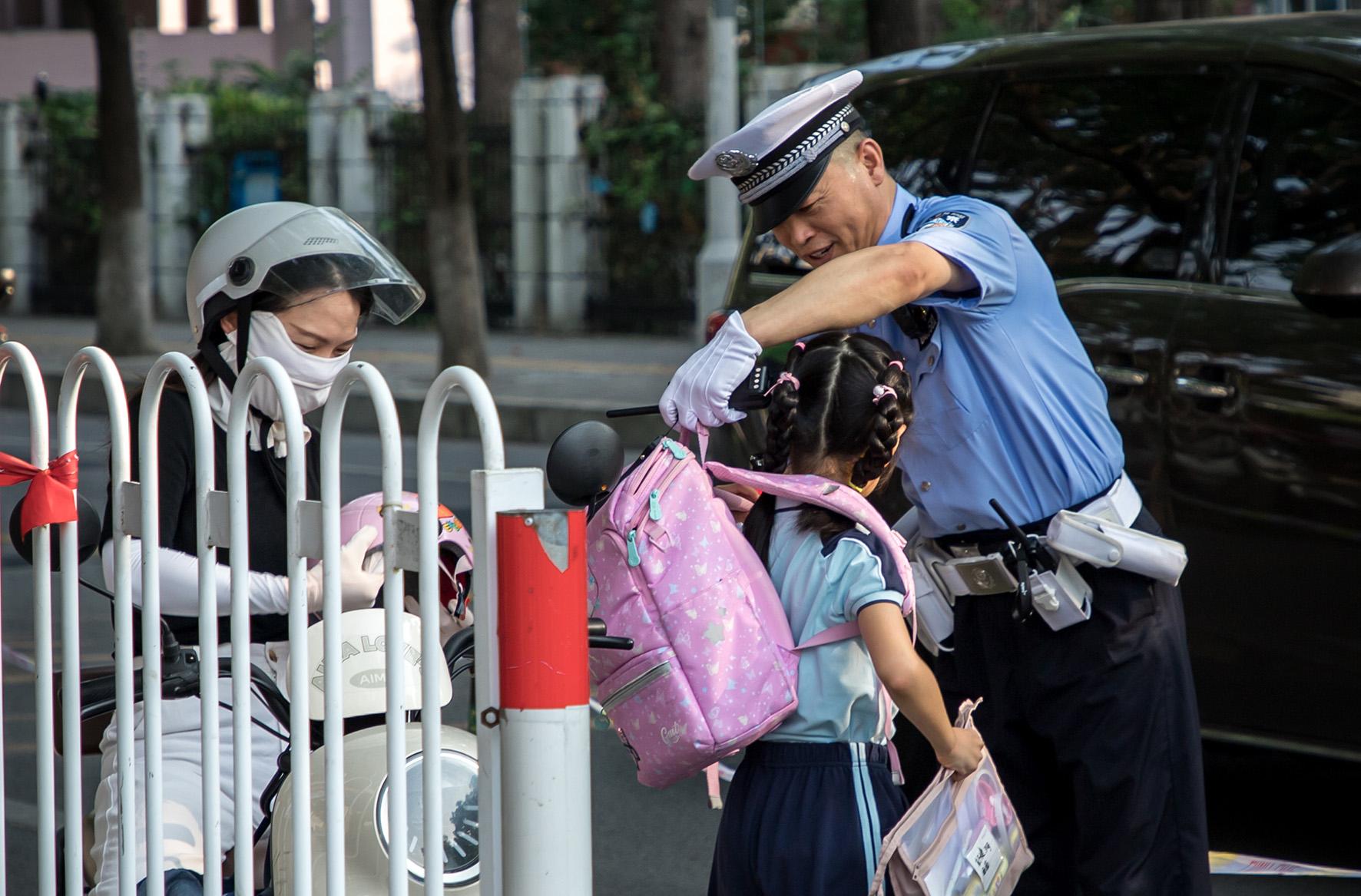 9月2日,安徽省當(dāng)涂縣公安局交管大隊(duì)民警正在校園周邊維護(hù)交通秩序,護(hù)送孩子們平安進(jìn)校園。