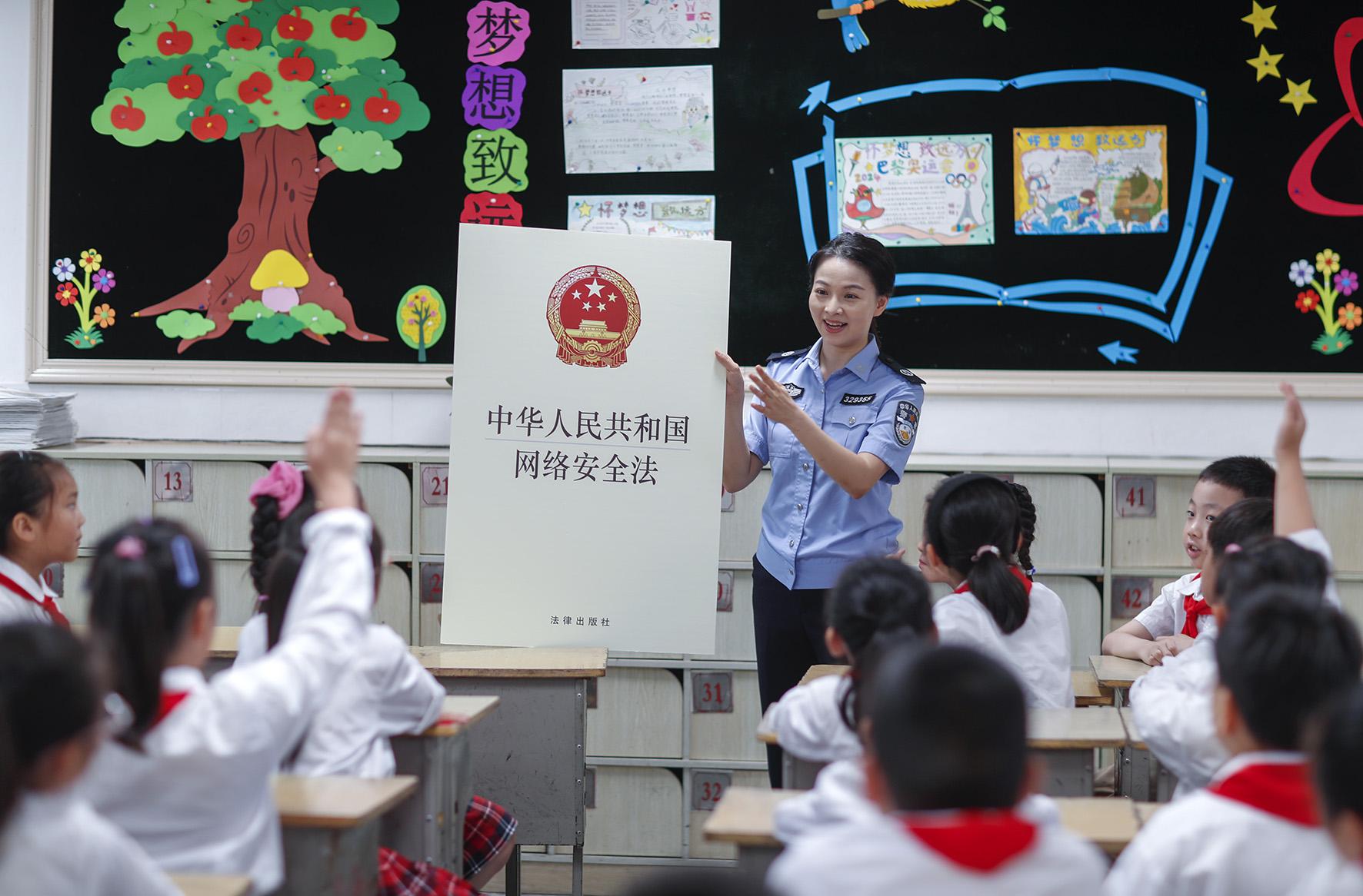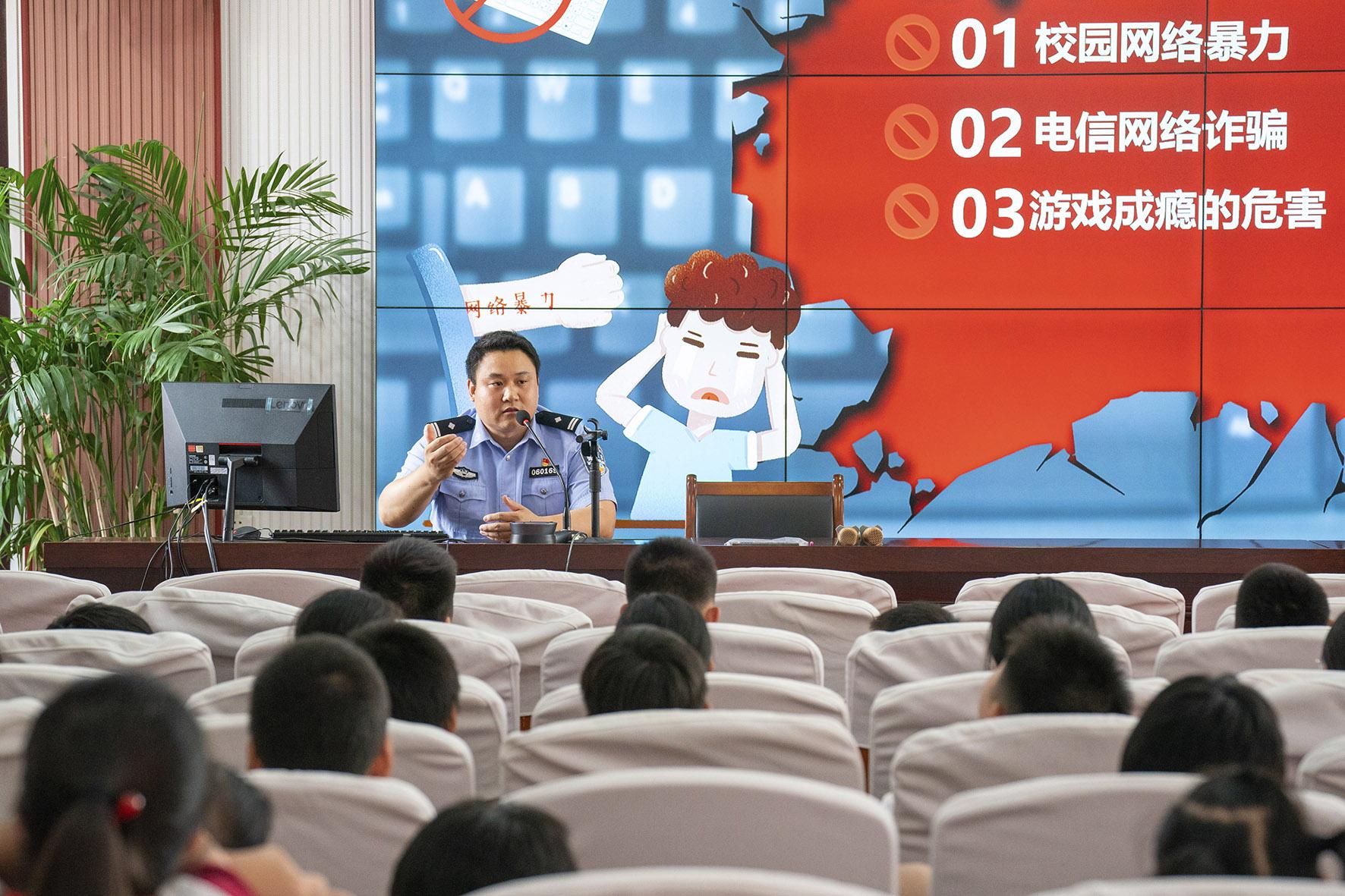 9月11日,江蘇省興化市司法局法治宣講員在興化市景范學(xué)校給學(xué)生們講解網(wǎng)絡(luò)安全知識。