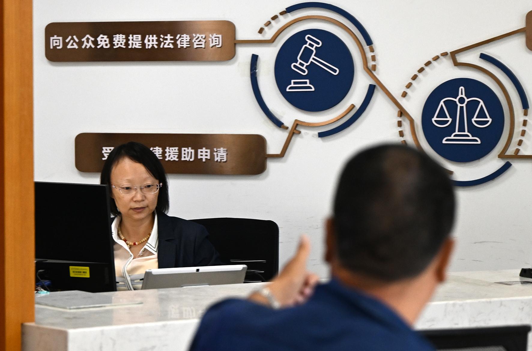 一名群眾的咨詢(xún)得到滿意解答后,高興地向法援律師豎起大拇指表示感謝。2015年起,西城區(qū)司法局法援中心律師每周定時(shí)來(lái)法院提供訴訟咨詢(xún)、代寫(xiě)文書(shū)及法律援助服務(wù)。