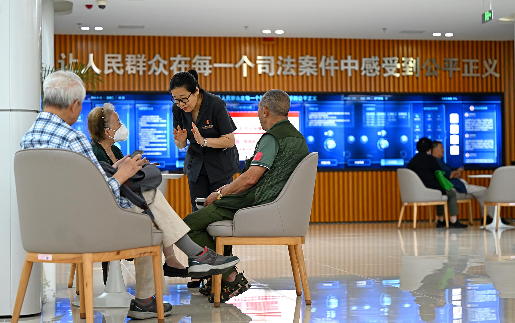 9月10日,北京市西城區(qū)人民法院訴訟服務(wù)中心大廳,立案庭訴服團(tuán)隊(duì)導(dǎo)訴組組長(zhǎng)杜春主動(dòng)上前詢(xún)問(wèn)幾位老人的情況,并協(xié)調(diào)解決了他們遇到的立案問(wèn)題。