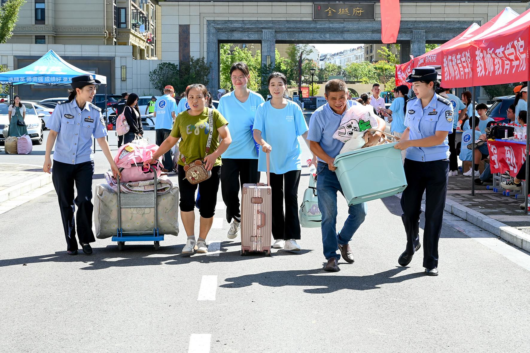 9月18日,在安徽省馬鞍山師范高等??茖W校,和縣公安局歷陽派出所民警正在幫助大一新生搬運行李,并對新生及家長開展反詐、禁毒普法宣傳。