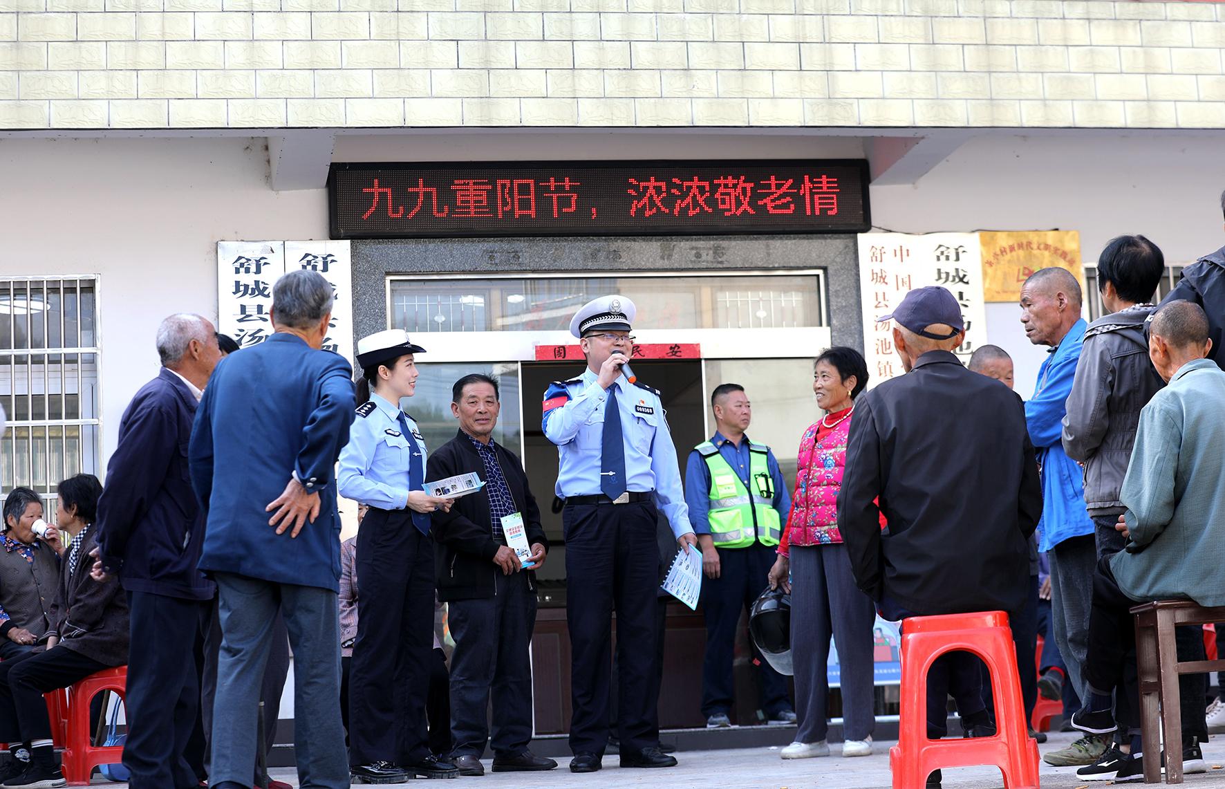 10月11日,安徽省六安市公安局交警支隊(duì)高速六大隊(duì)聯(lián)合舒城縣公安局交管大隊(duì)、湯池派出所等單位走進(jìn)湯池鎮(zhèn)茶亭村,開展“九九重陽(yáng) 久久安康——護(hù)老行動(dòng)暨交通安全宣傳進(jìn)農(nóng)村”活動(dòng)。