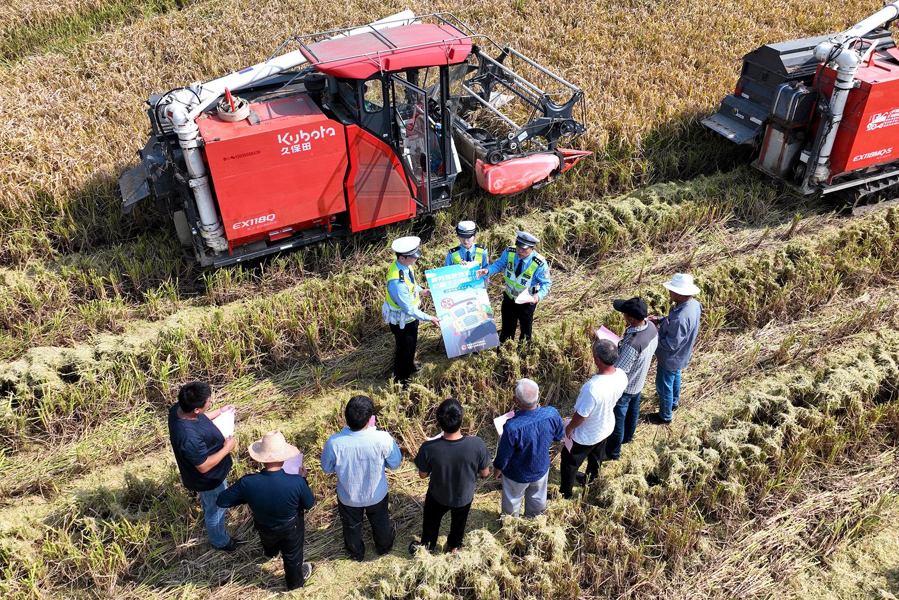 10月11日,安徽省蕪湖市公安局交警支隊(duì)高速三大隊(duì)抓住農(nóng)村秋收季節(jié)特點(diǎn),組織民警深入高速公路沿邊田間地頭開(kāi)展交通安全宣傳,提高群眾交通安全意識(shí)。