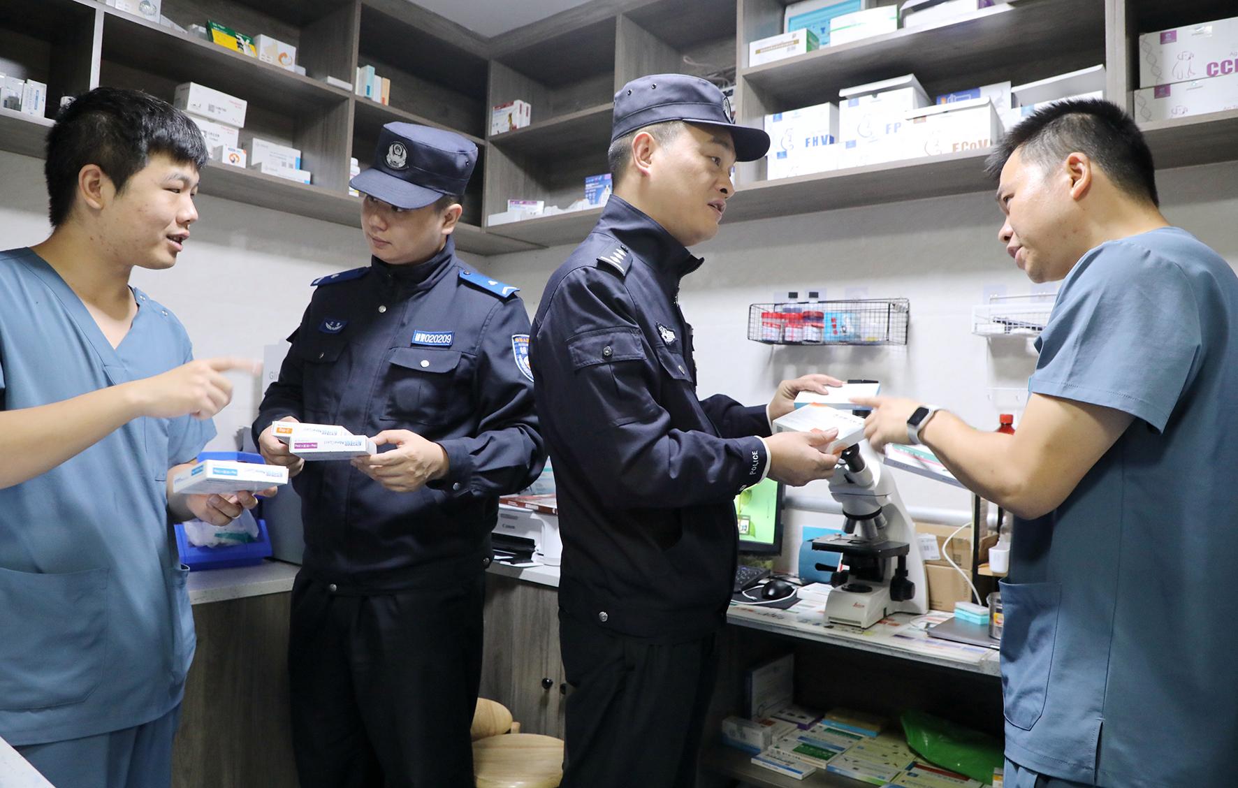 10月14日,江西省九江市公安局潯陽分局人民路派出所民警輔警通過實地查看、查閱銷售臺賬、現(xiàn)場詢問等方式開展獸用麻醉藥品和獸用精神藥品排查檢查。