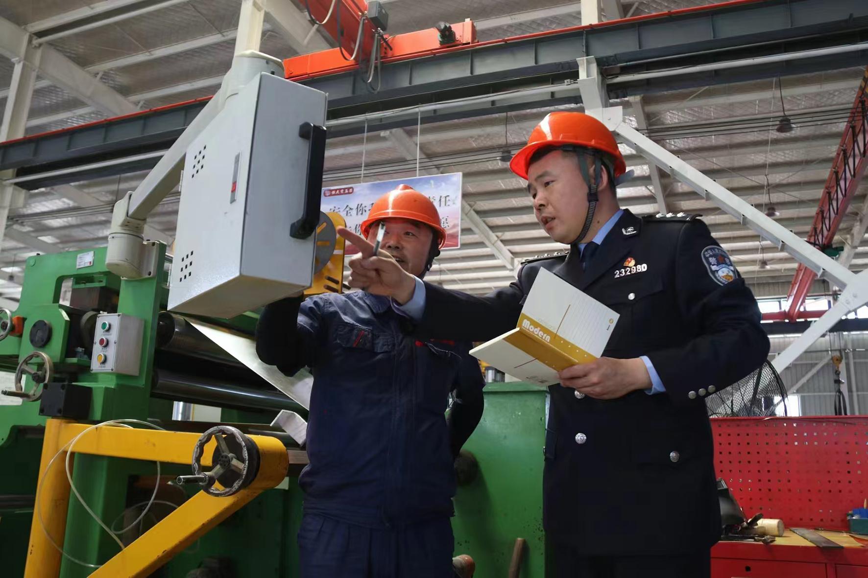 圖為民警走進(jìn)企業(yè)了解情況,開(kāi)展預(yù)防經(jīng)濟(jì)犯罪知識(shí)宣傳。