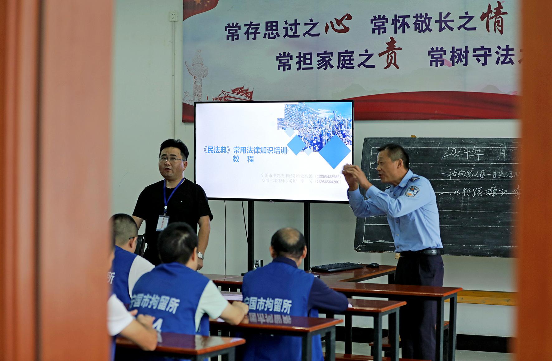 10月15日,安徽省寧國市拘留所開展“律師送法進監(jiān)所”普法教育活動。