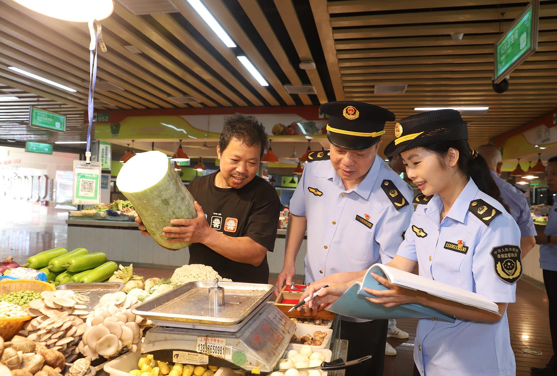 10月18日,浙江省臺州市路橋區(qū)橫街鎮(zhèn)市場監(jiān)督管理所執(zhí)法人員在菜市場里利用標(biāo)準(zhǔn)砝碼測試計量秤的精準(zhǔn)度。