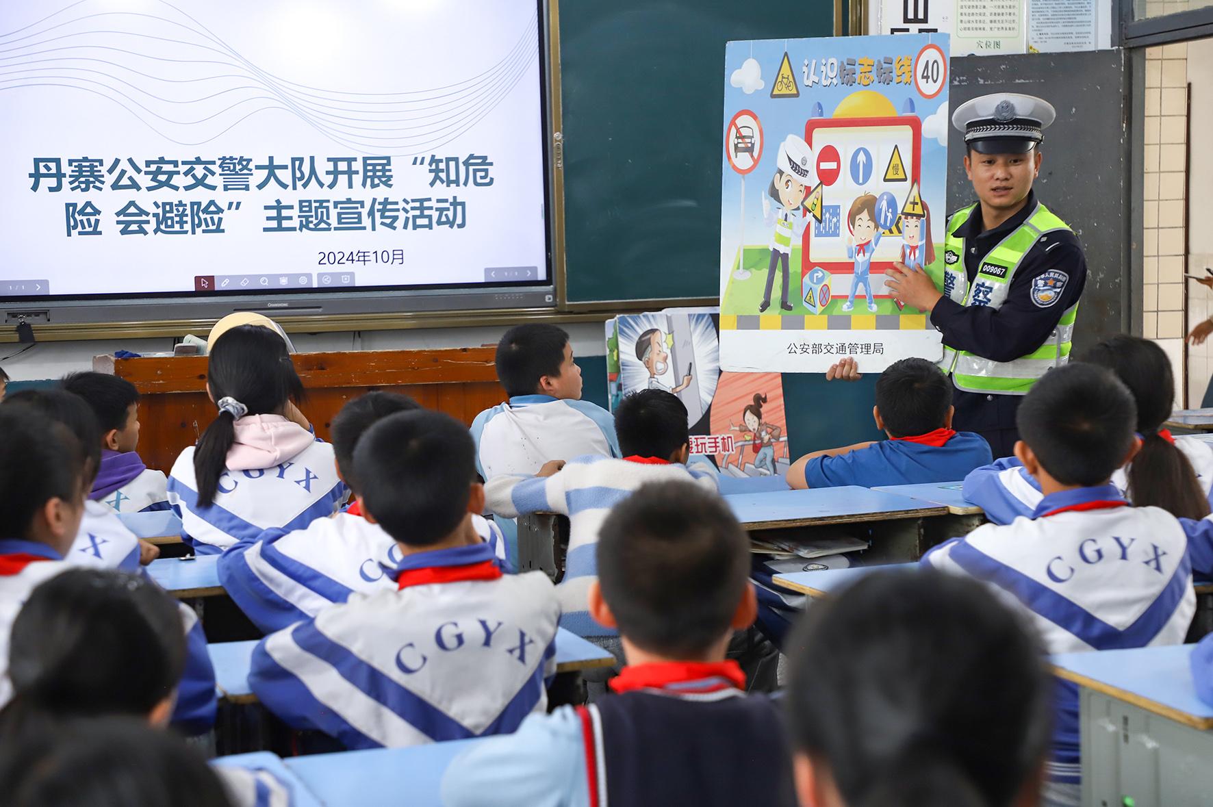 10月18日,貴州省丹寨縣公安局交通警察大隊民警走進轄區(qū)城關(guān)一小,以主題班會的形式向同學(xué)們開展交通安全宣傳教育。