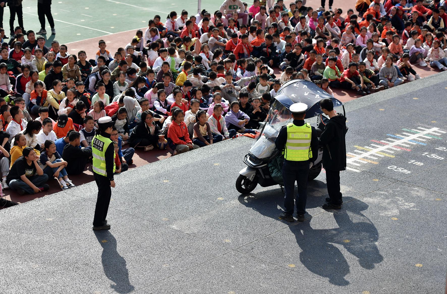 10月28日,四川省綿陽市公安局交警支隊直屬二大隊民警來到轄區(qū)小學(xué)開展交通安全宣講活動。
