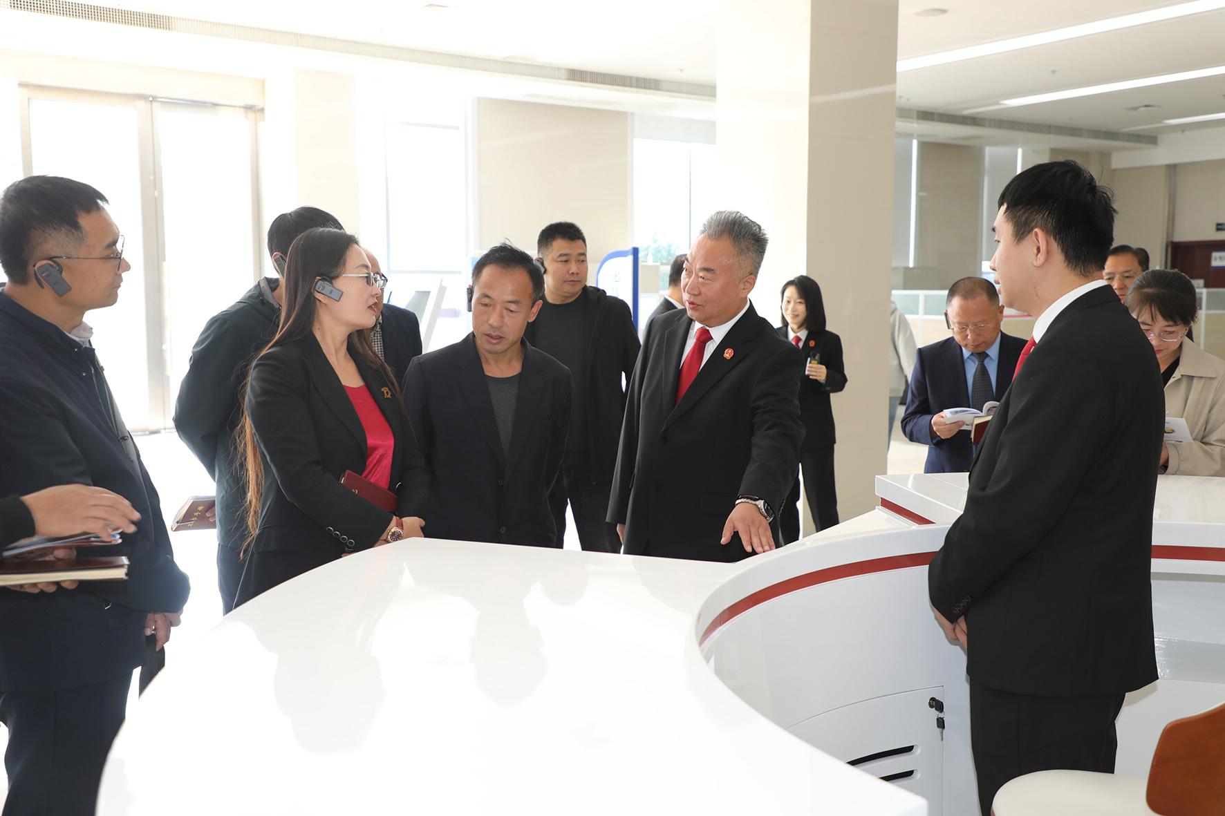 圖為特約監(jiān)督員在便民訴訟服務(wù)中心了解工作情況。