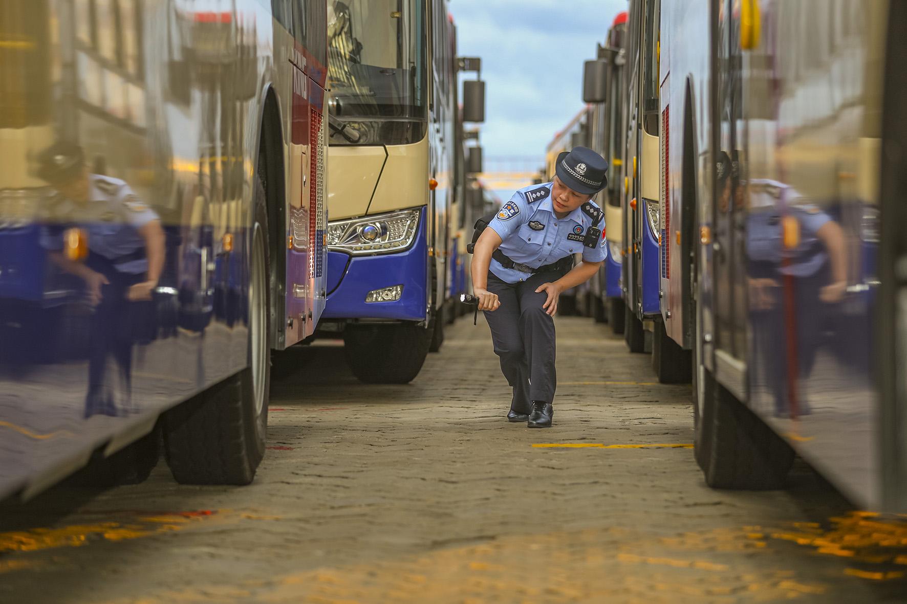 圖為10月31日,移民管理警察正在對142輛國產(chǎn)商用車進行檢查監(jiān)護。