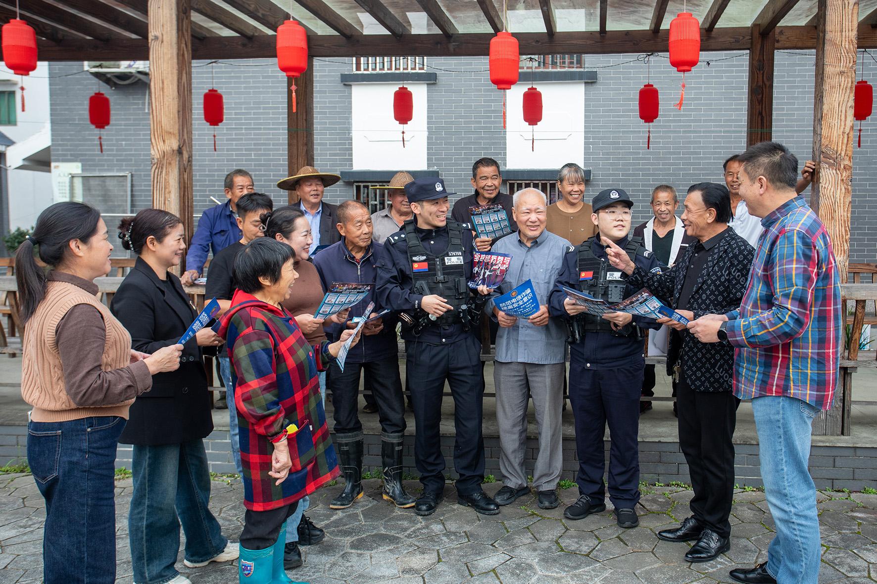 11月4日,浙江省臺州市公安局黃巖分局寧溪派出所民警和“鄉(xiāng)村宣傳大使”把防范電信網(wǎng)絡詐騙知識編成詼諧的順口溜,在寧溪鎮(zhèn)上宅居開展反詐宣傳活動。