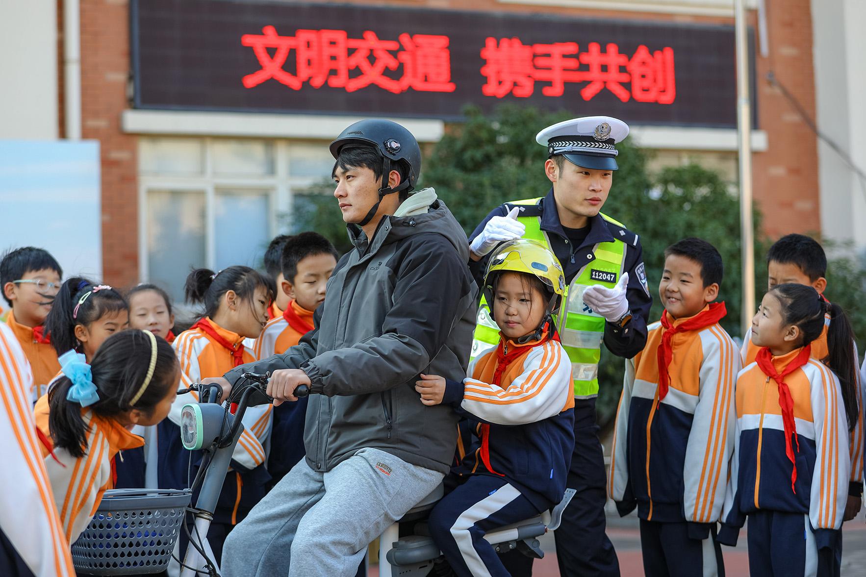 12月2日,江蘇省徐州市公安局交警支隊鼓樓大隊二中隊與民主實驗學校聯(lián)合開展“文明交通 攜手共創(chuàng)”為主題的交通安全宣傳活動。