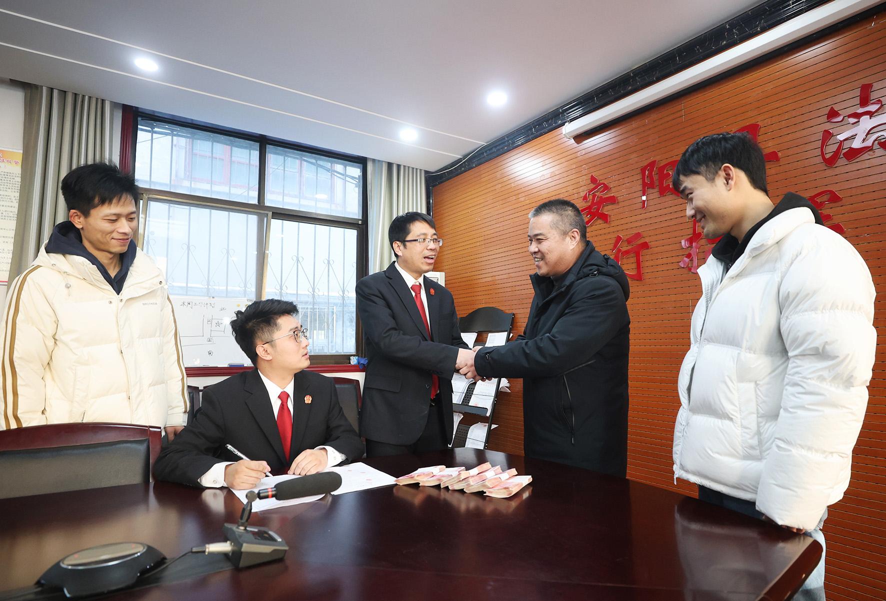 12月23日,河南省安陽(yáng)縣人民法院執(zhí)結(jié)一起建筑工程合同糾紛案后,申請(qǐng)人喜領(lǐng)6萬(wàn)元執(zhí)行款并向法官表示感謝。