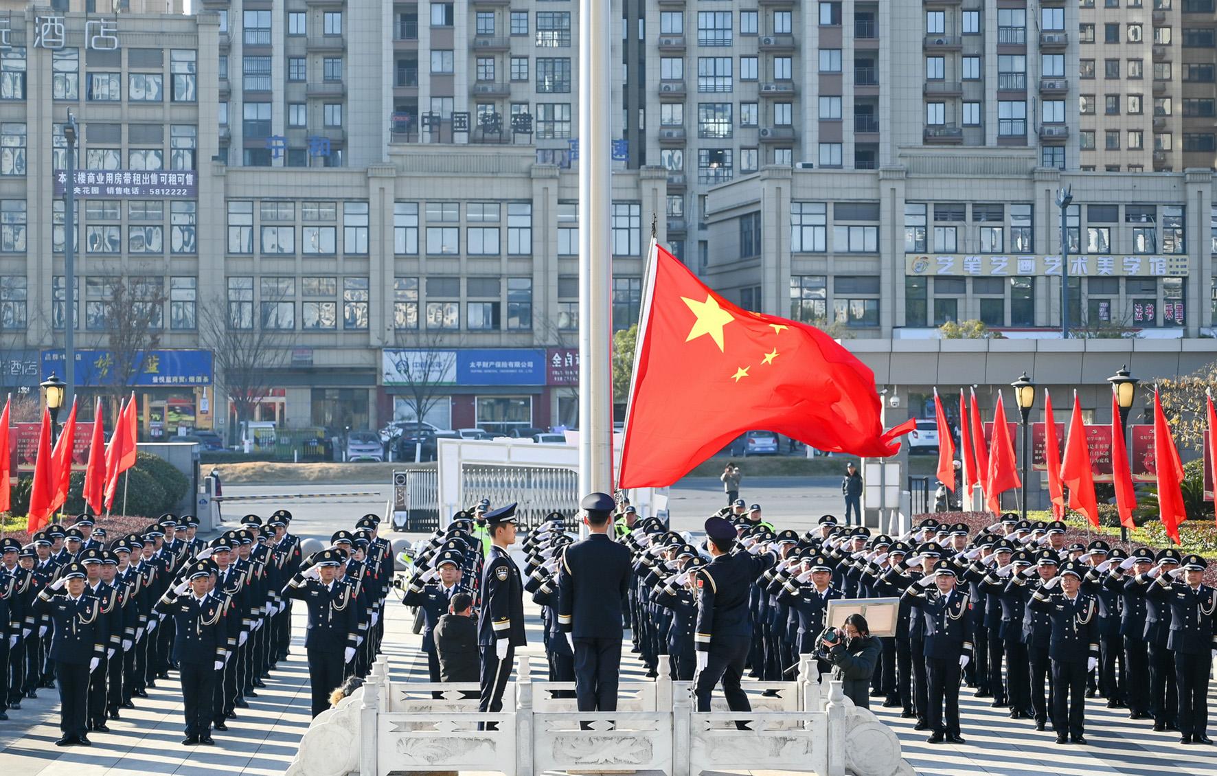 1月10日,安徽省巢湖市公安局組織開(kāi)展升旗儀式暨授獎(jiǎng)榮譽(yù)儀式。