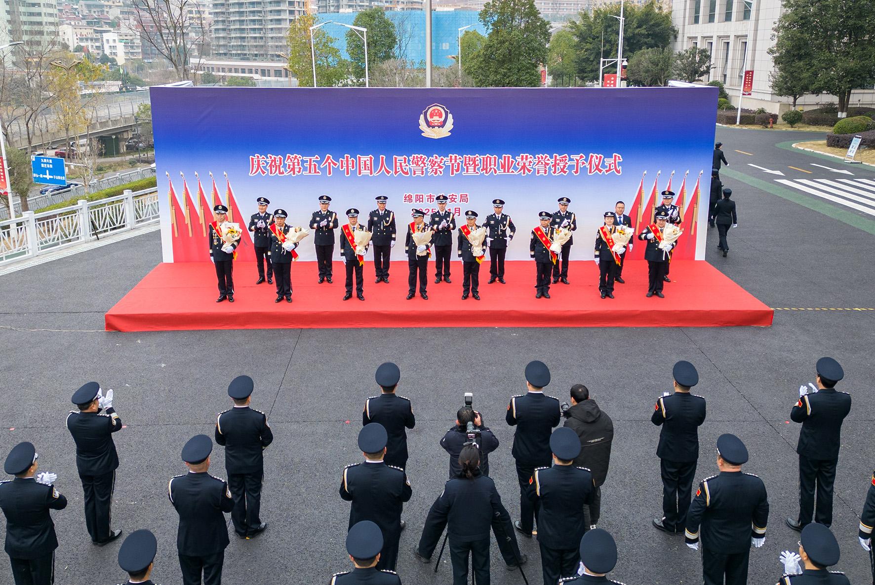 1月10日,四川省綿陽(yáng)市舉行“升警旗 重溫入警誓詞”活動(dòng)及榮譽(yù)授予儀式,慶祝第五個(gè)中國(guó)人民警察節(jié)。